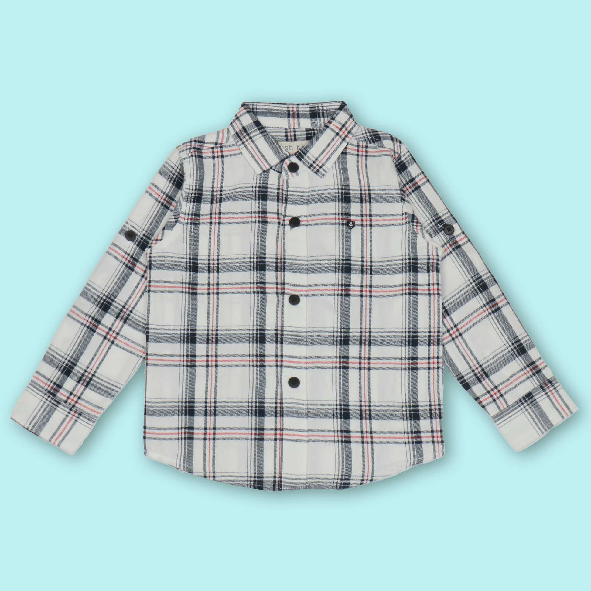 Jash Kids Boys White Checked Full Sleeve Cotton Blend Shirt