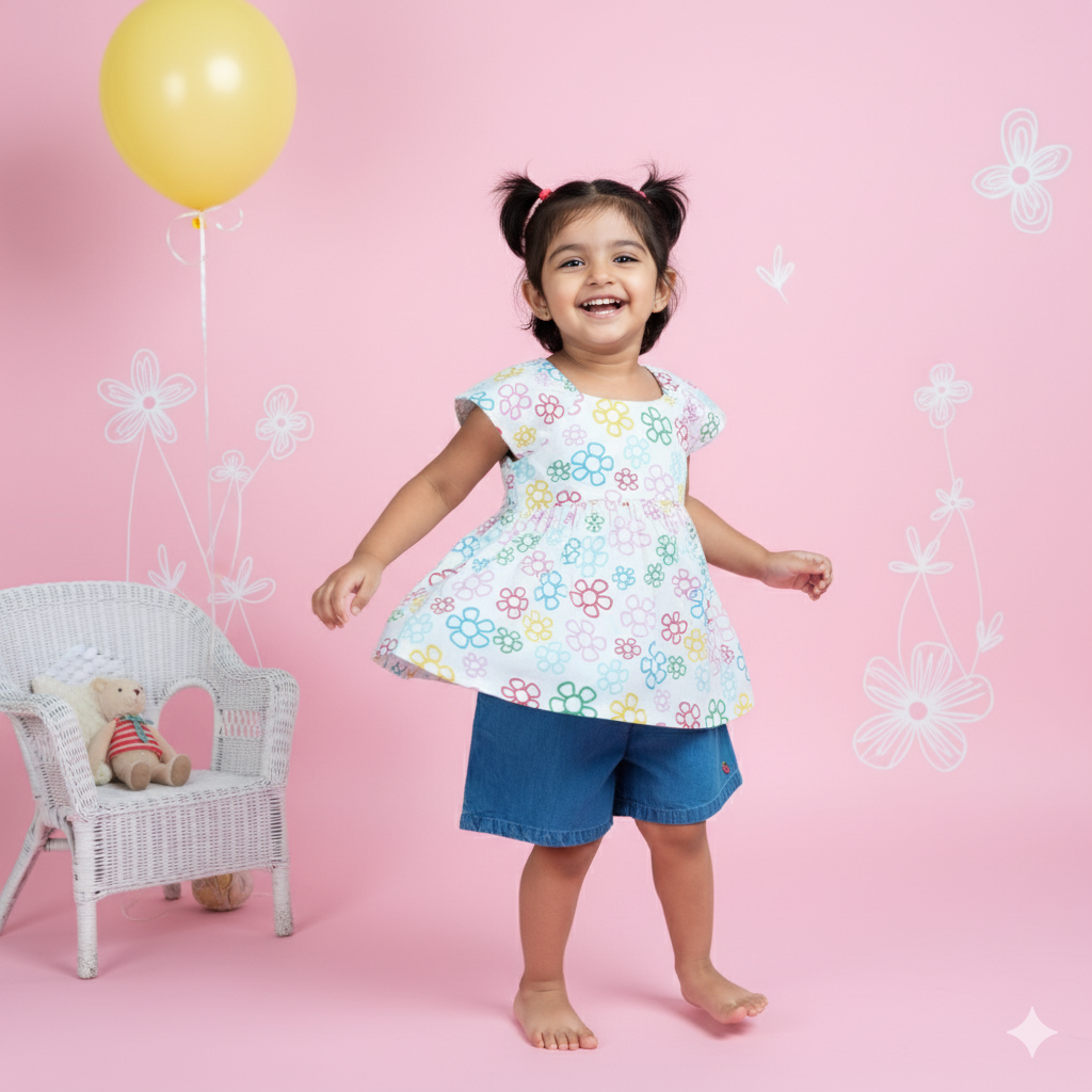 Fresh & Fun: Orrigany White Short-Sleeve Top with Comfy Denim Shorts for Girls