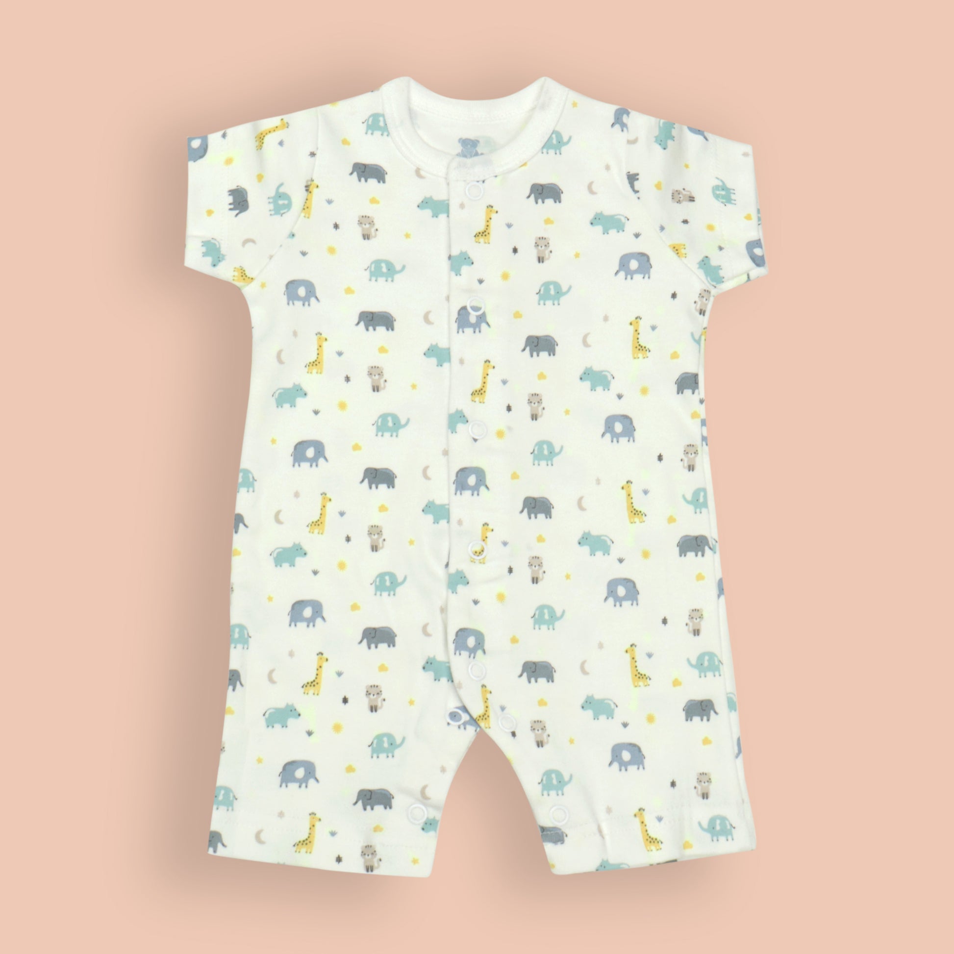 Romper 3: Off White Romper with All over placement Animal Print with Front and Bottom Snap Button