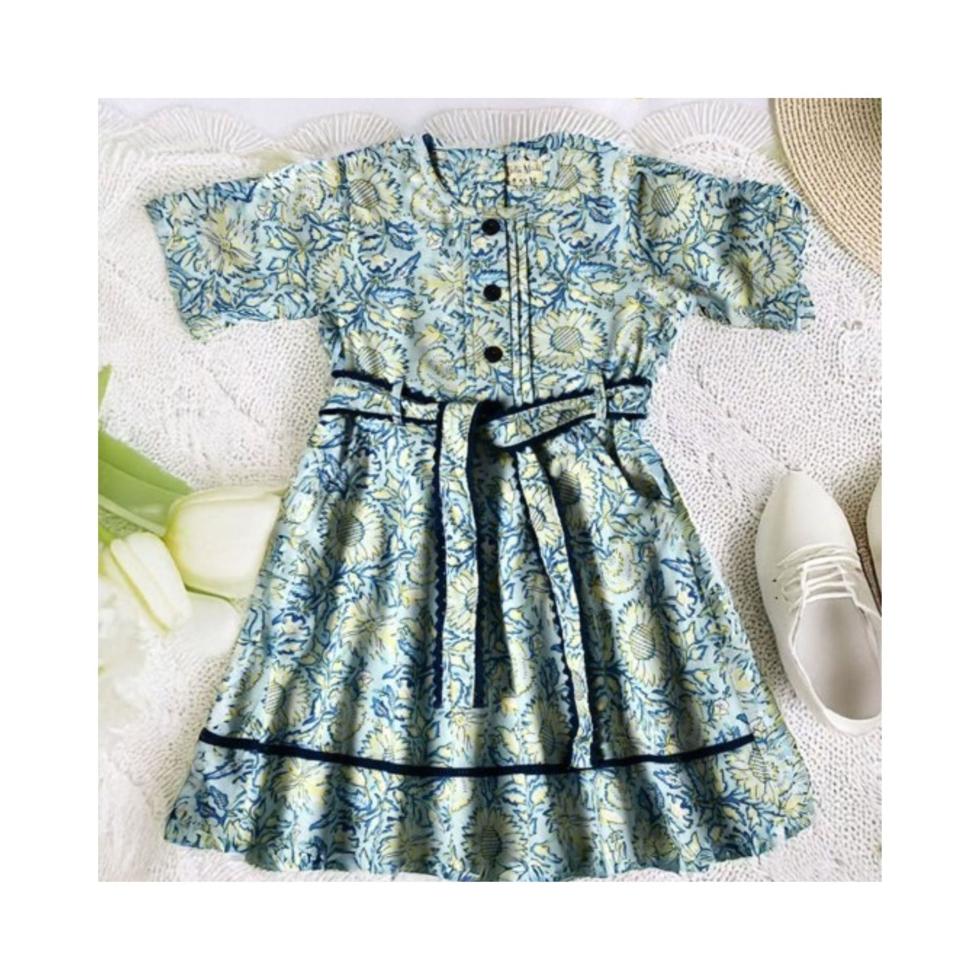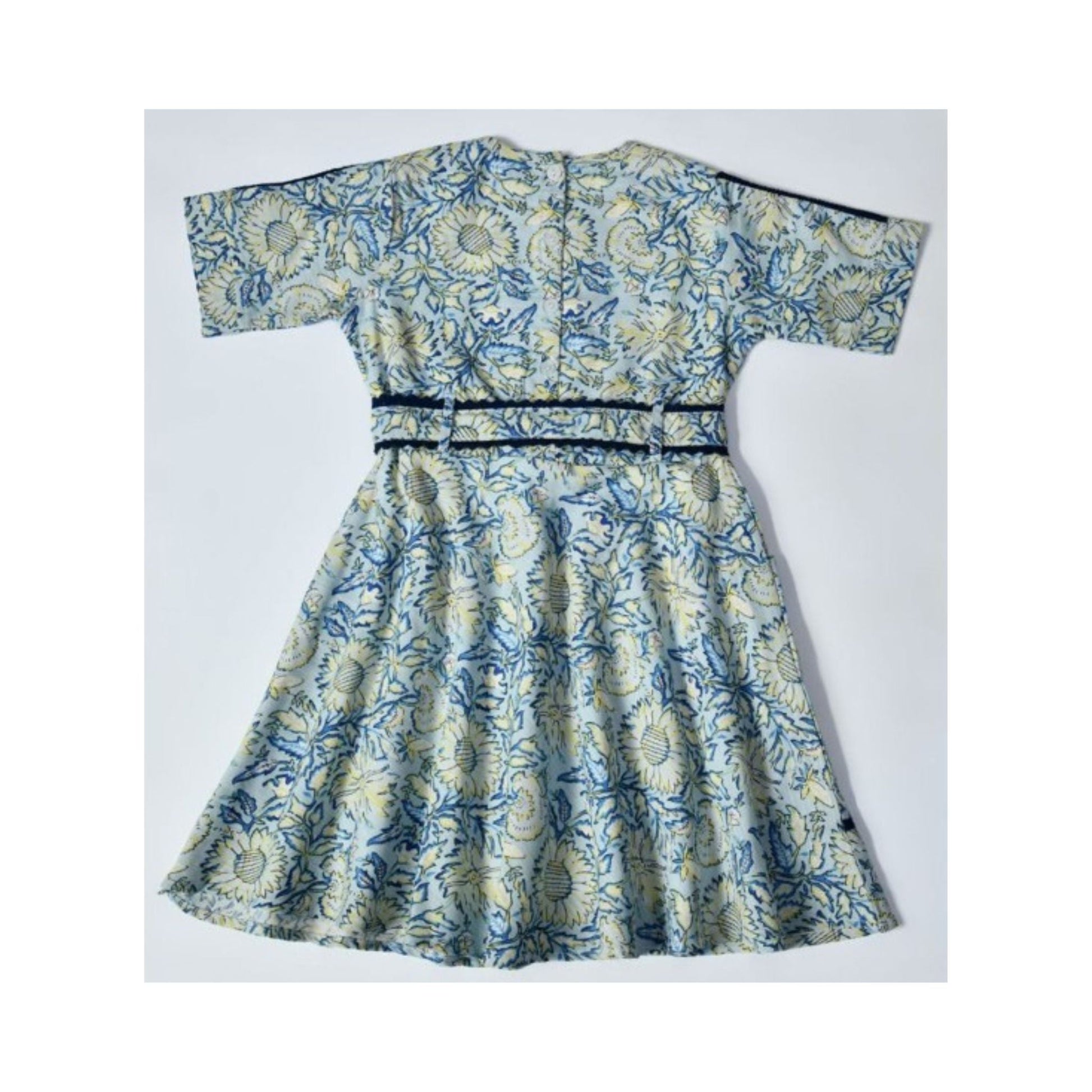 Bella Moda Girls Cotton One-Piece Frock – Soft Half Sleeves, Round Neck with Back Buttons – Small Flower Print for Essentials, Smart Outdoor, Party & Fashion Wear (All Seasons)