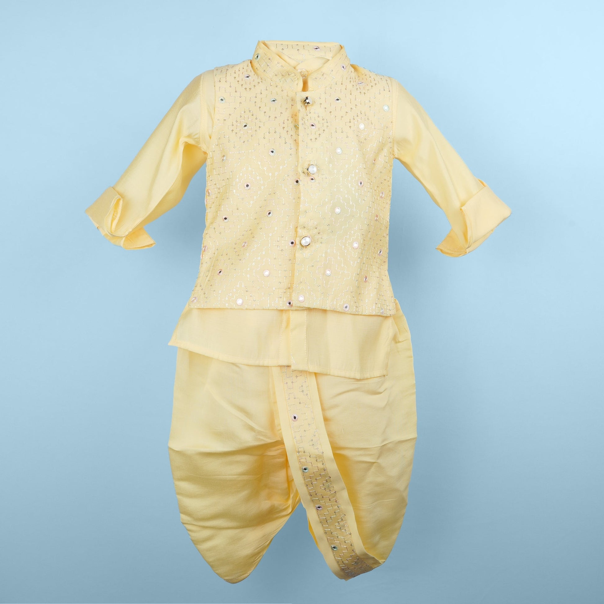Pack Content:1 Jacket, 1 Kurta and 1 Dhoti