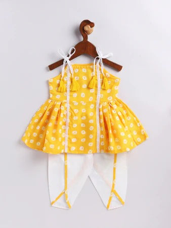 Twinkle in Yellow: VASTRAMAY Sleeveless Kurta with Playful Prints & Comfy Dhoti Pants