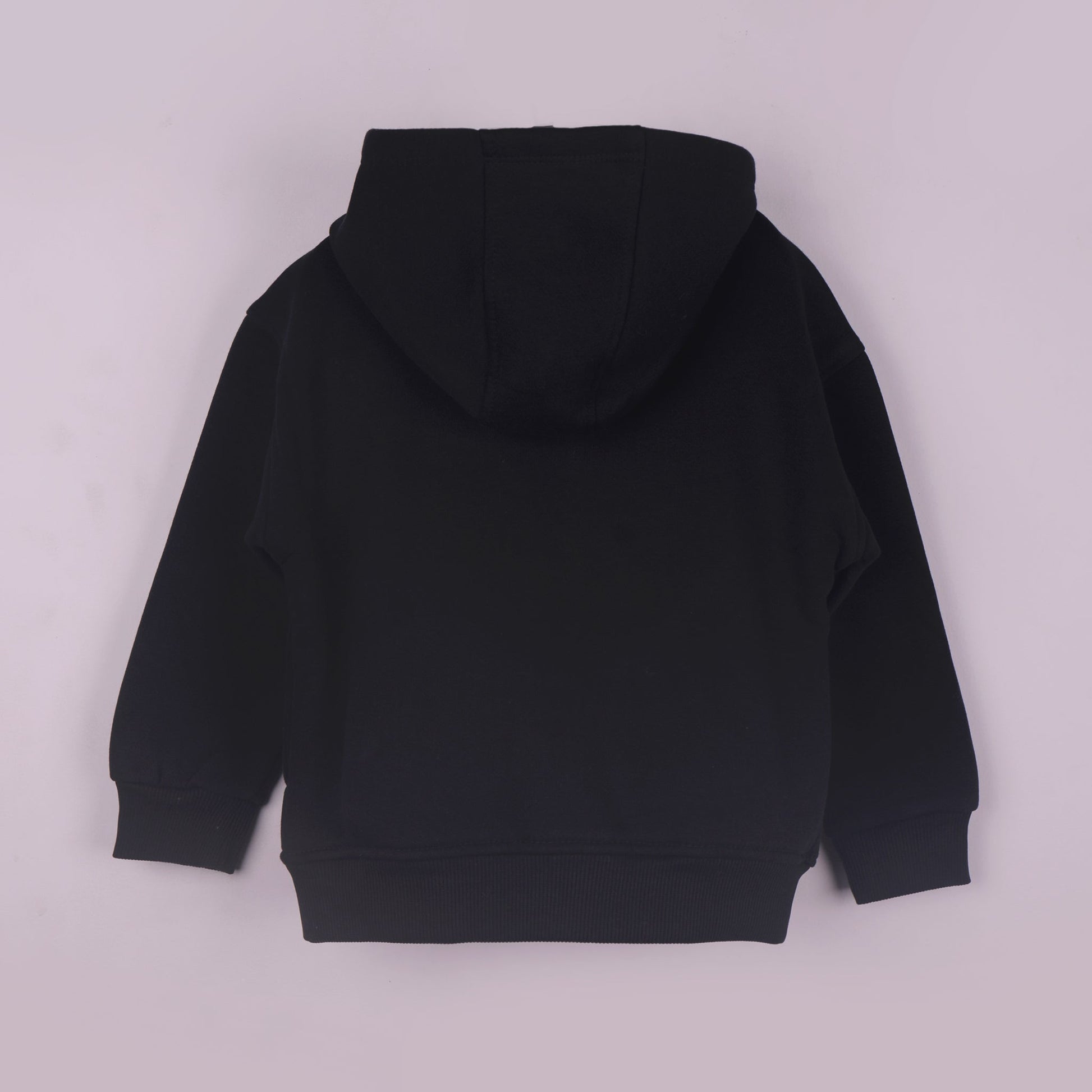 Extra Soft Cotton Sweat Jacket for Boys | Little Kangaroos Black Hooded Zip-Up