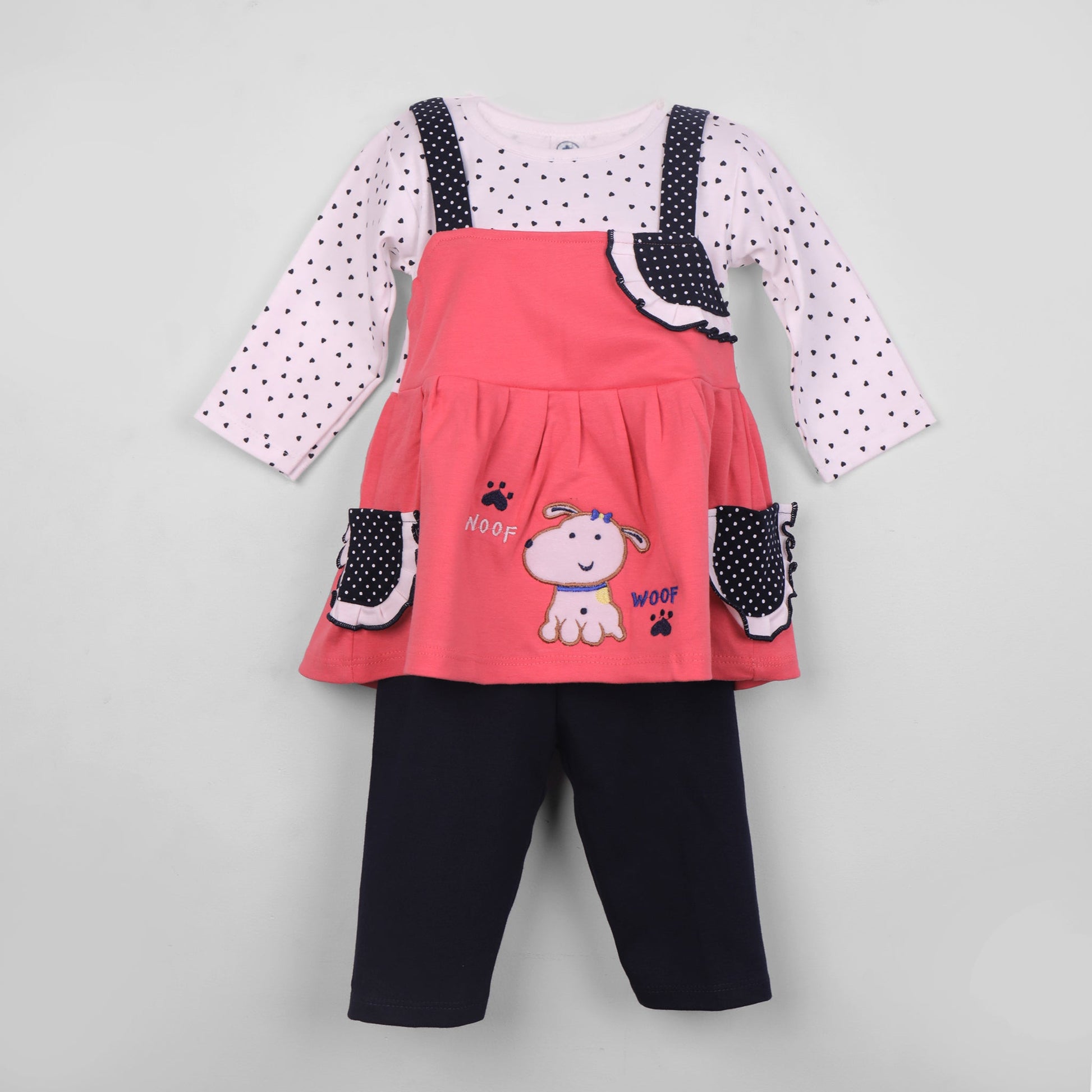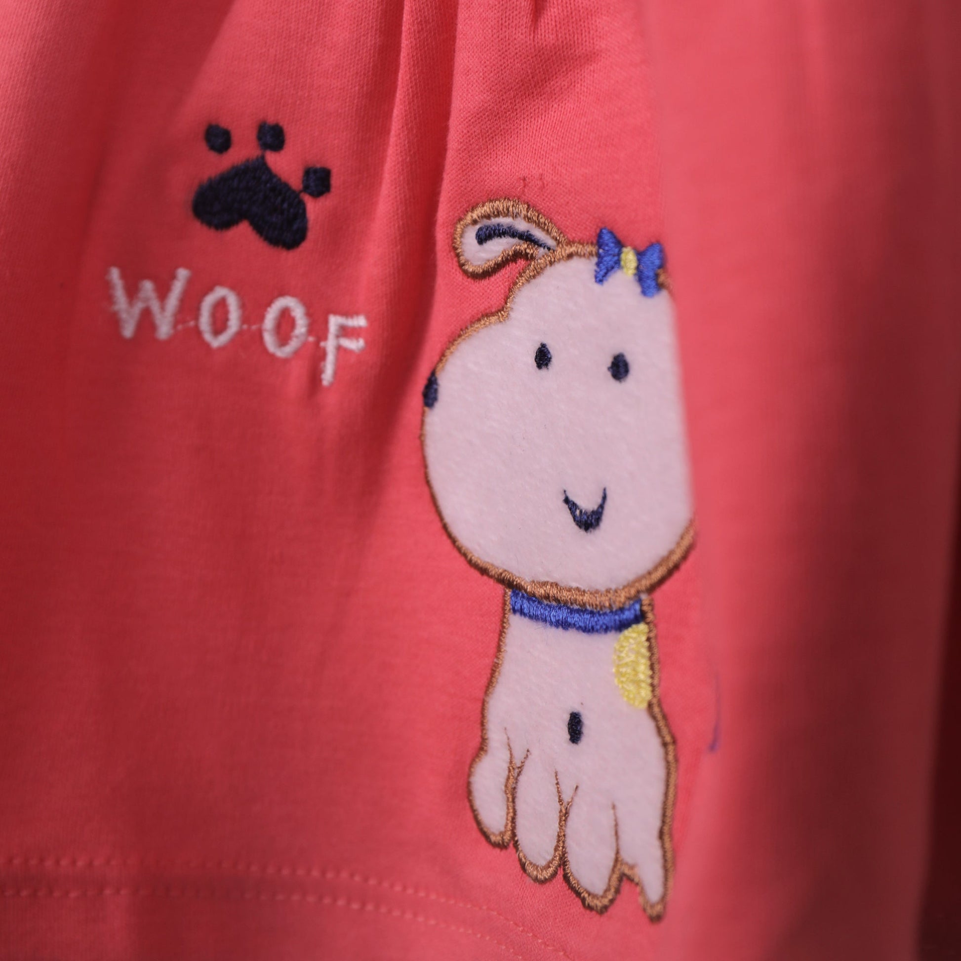 Brighten her day in Piu’s red frock—embroidery, 3/4 sleeves, and comfy leggings!