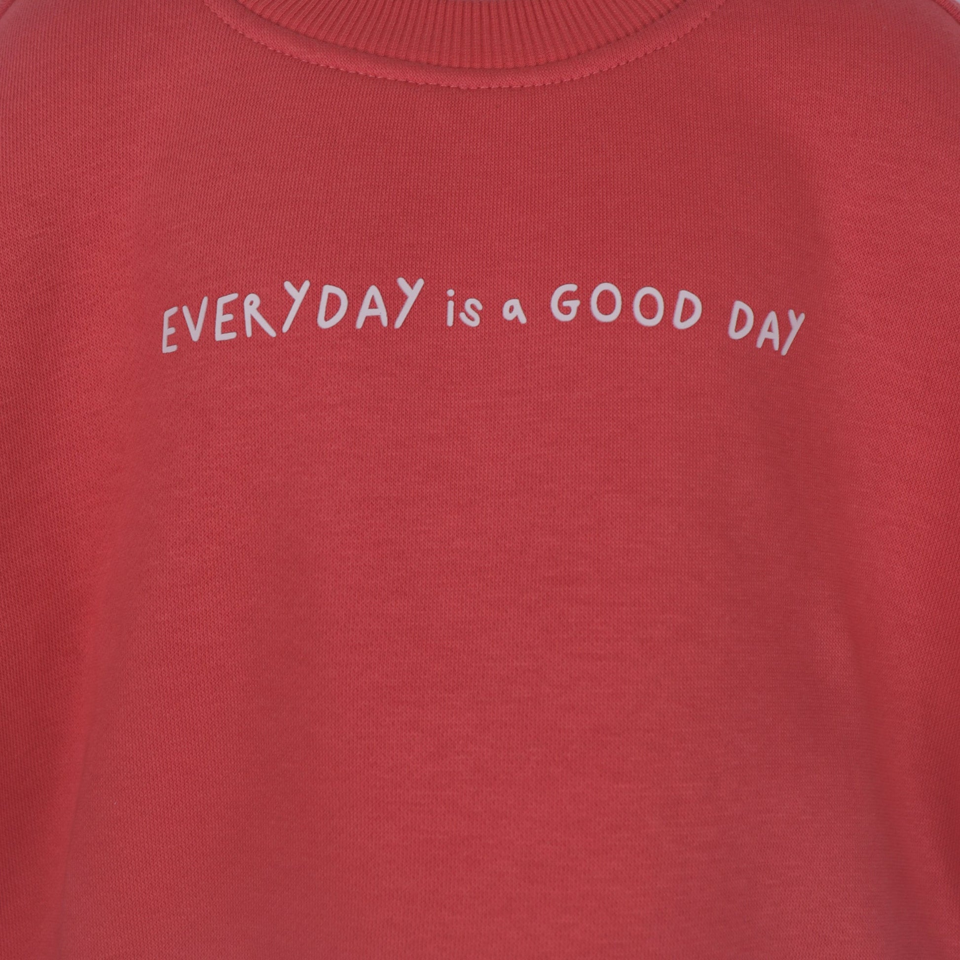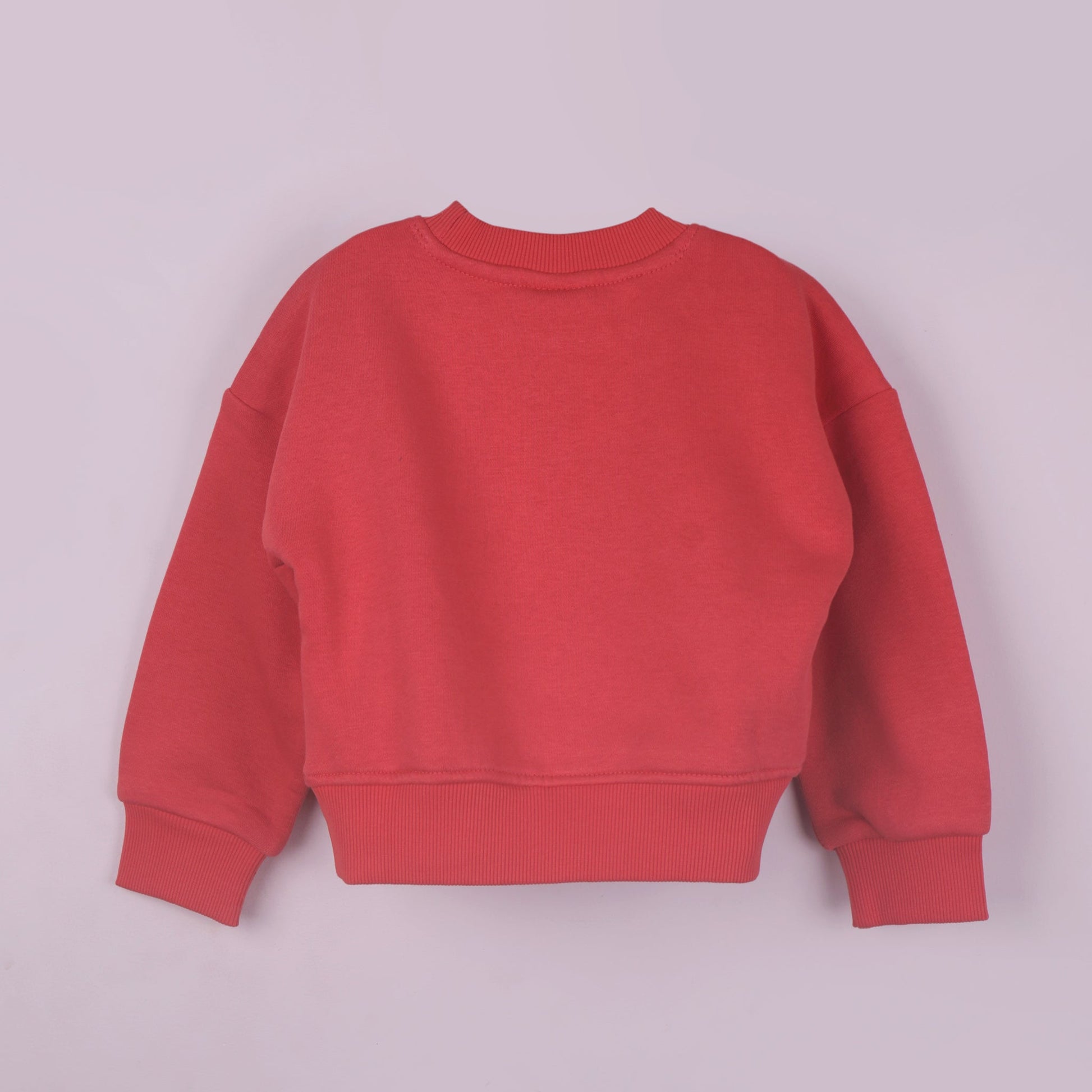 Full Sleeve Red Cotton Sweatshirt for Girls | Little Kangaroos ‘Good Day’ Smart Outdoor