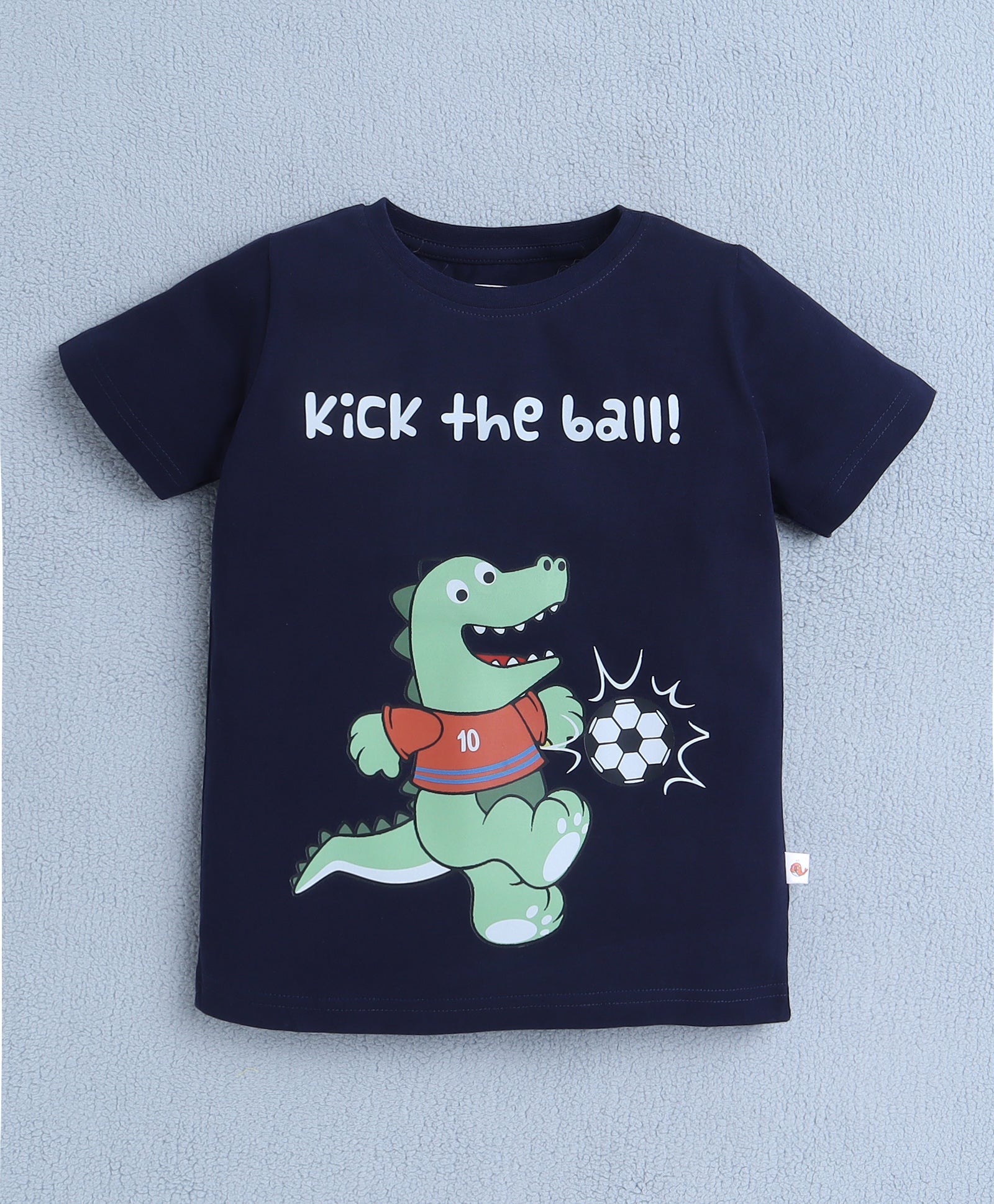 Game On! Bumzee Boys’ “Kick the Ball!” Cotton T-Shirt Pack – Navy Blue & Neon Green