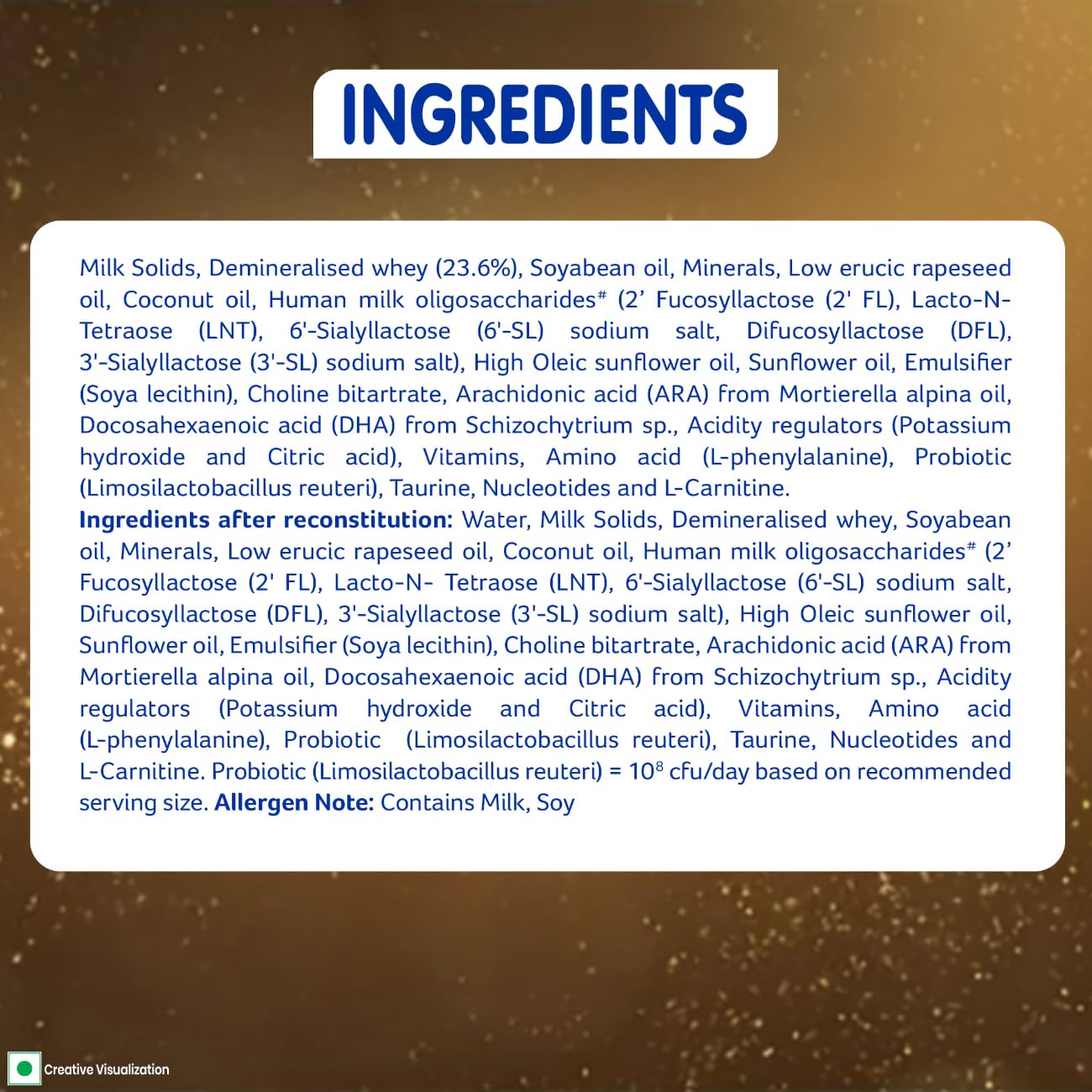 CONTAINS 5 HMO:NAN EXCELLAPRO 1 contains 2’-FL, LNT, 6’-SL, DFL, and 3’-SL. These 5 HMOs are among the most predominant HMOs known so far