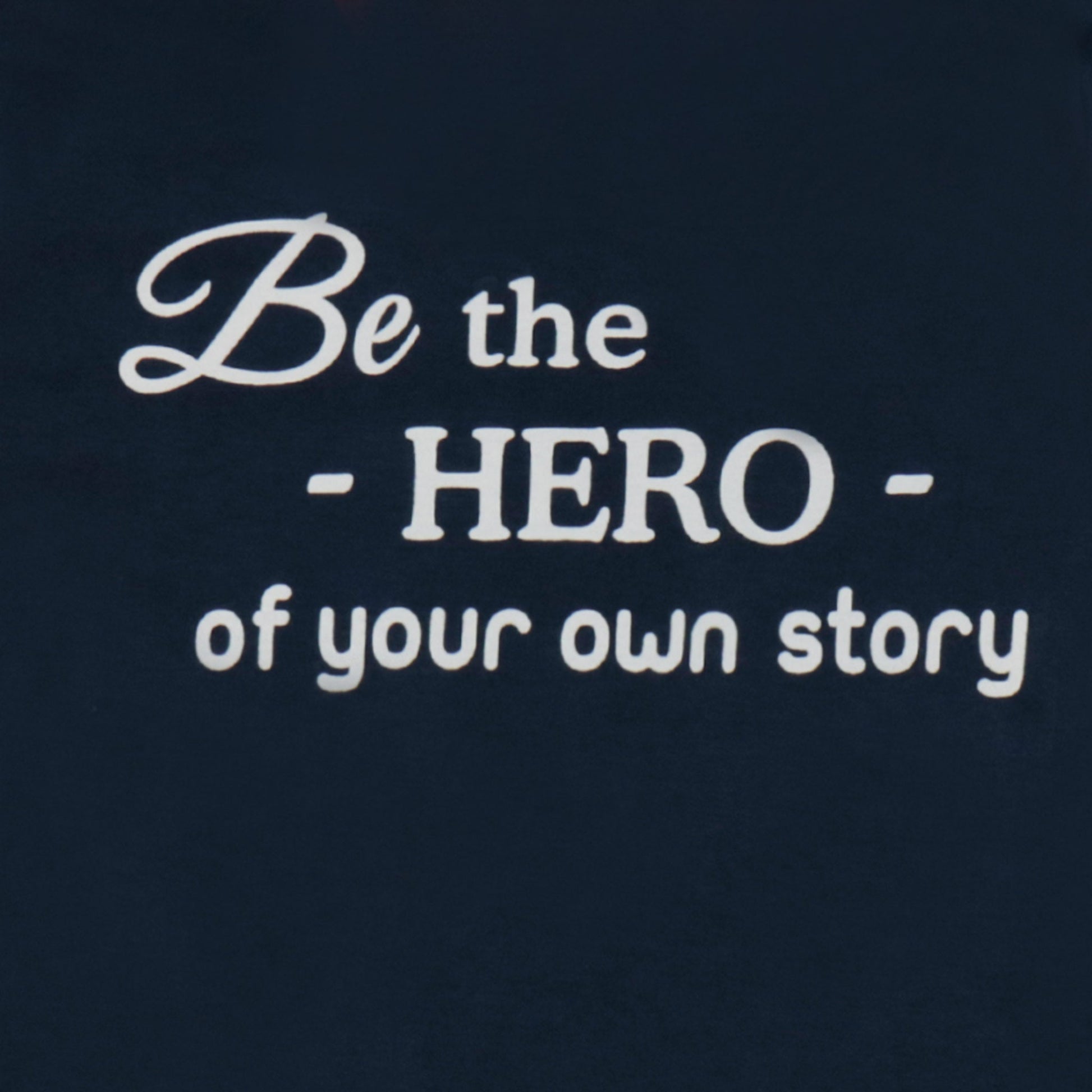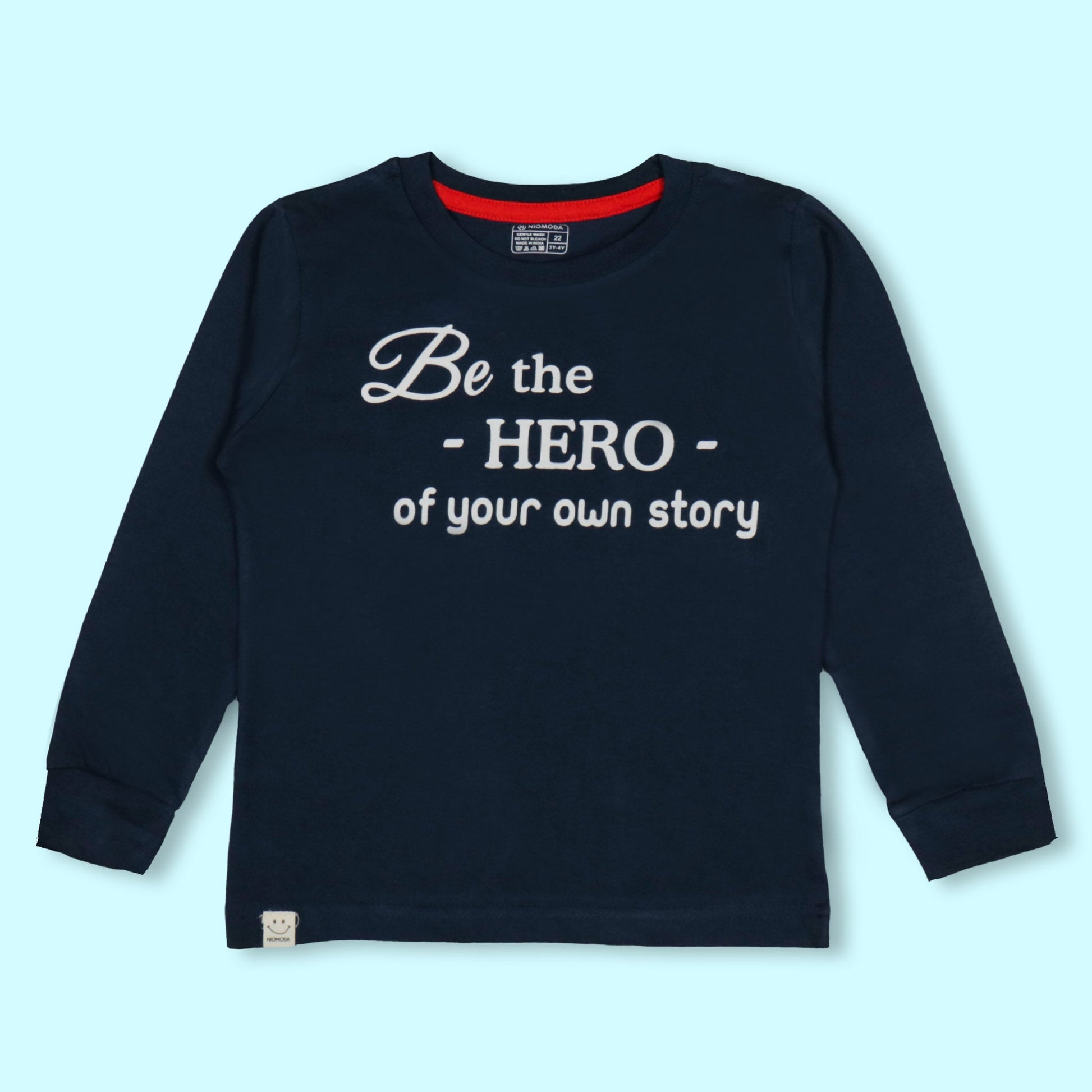 NIOMODA Boys’ Warm Essential – Navy Blue Full Sleeve Cotton Tee, Be the Hero of Your Own Story Motivational Print