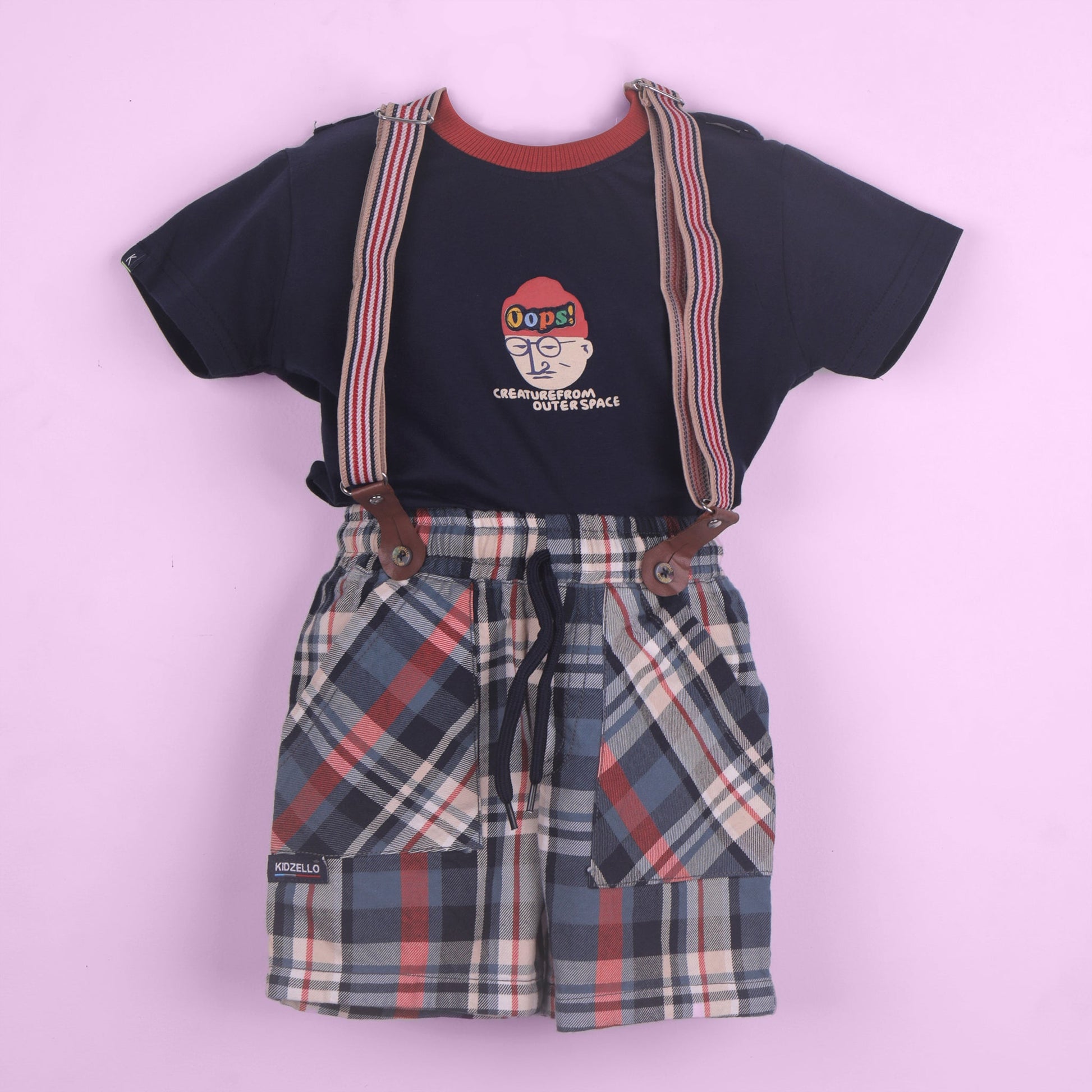 Galaxy Fun – Navy Cotton Tee with Shorts & Braces