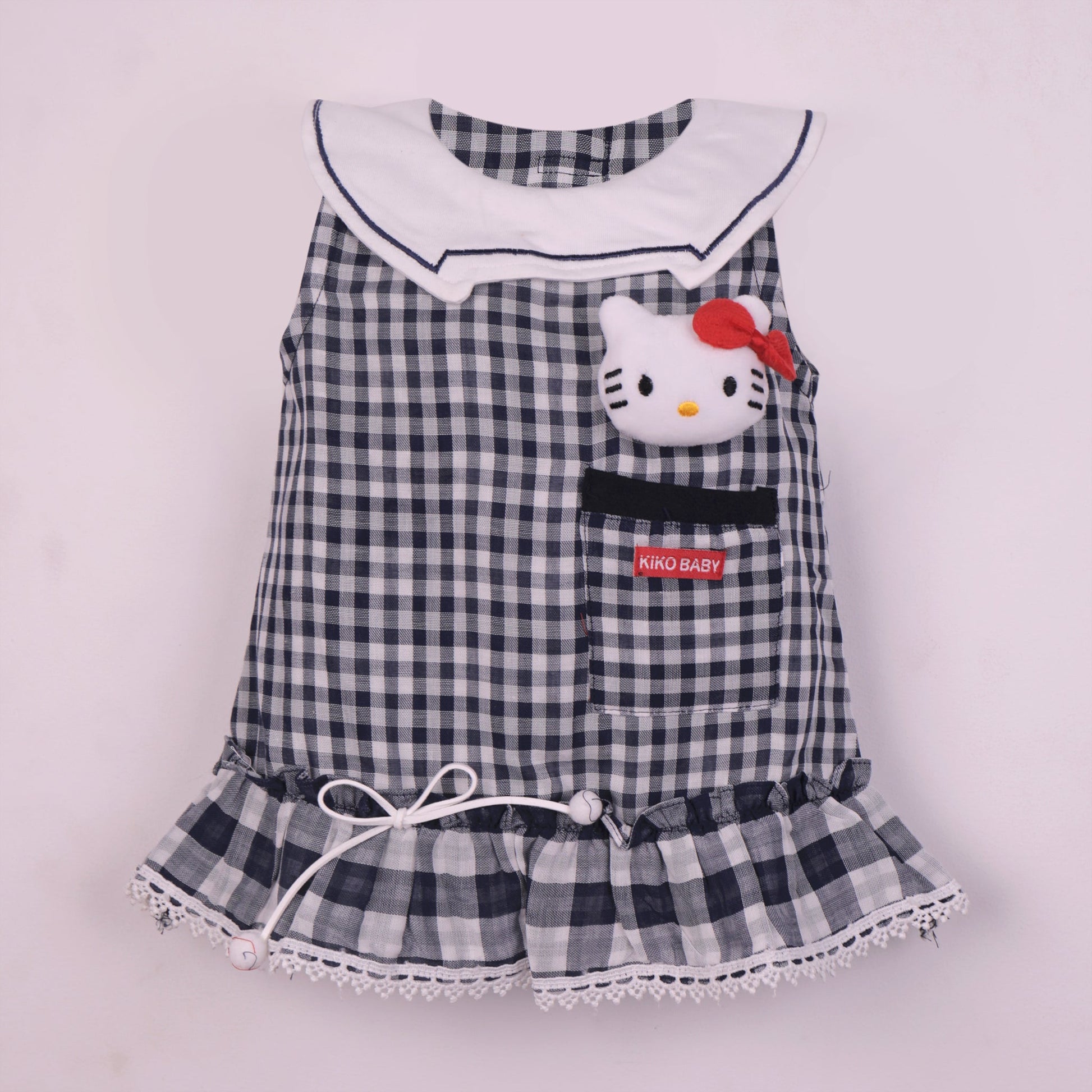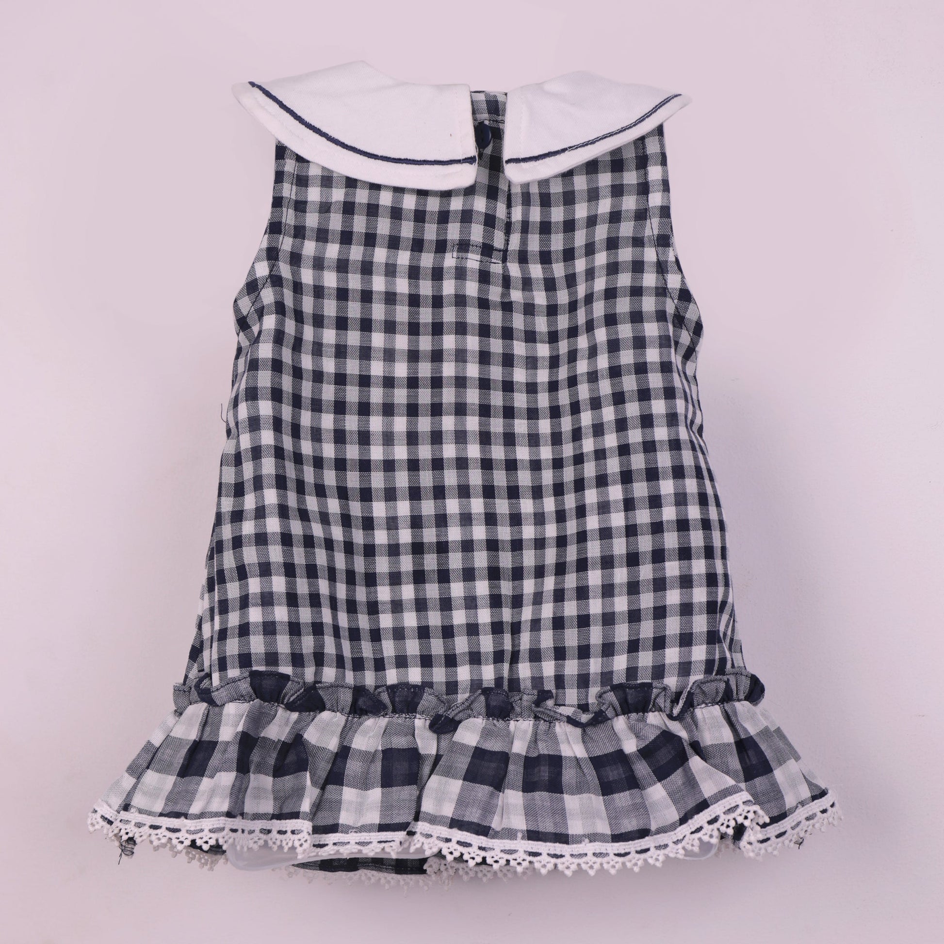Smart Outdoor Navy Blue Checked Frock with Peter Pan Collar & Panty by KIK Original