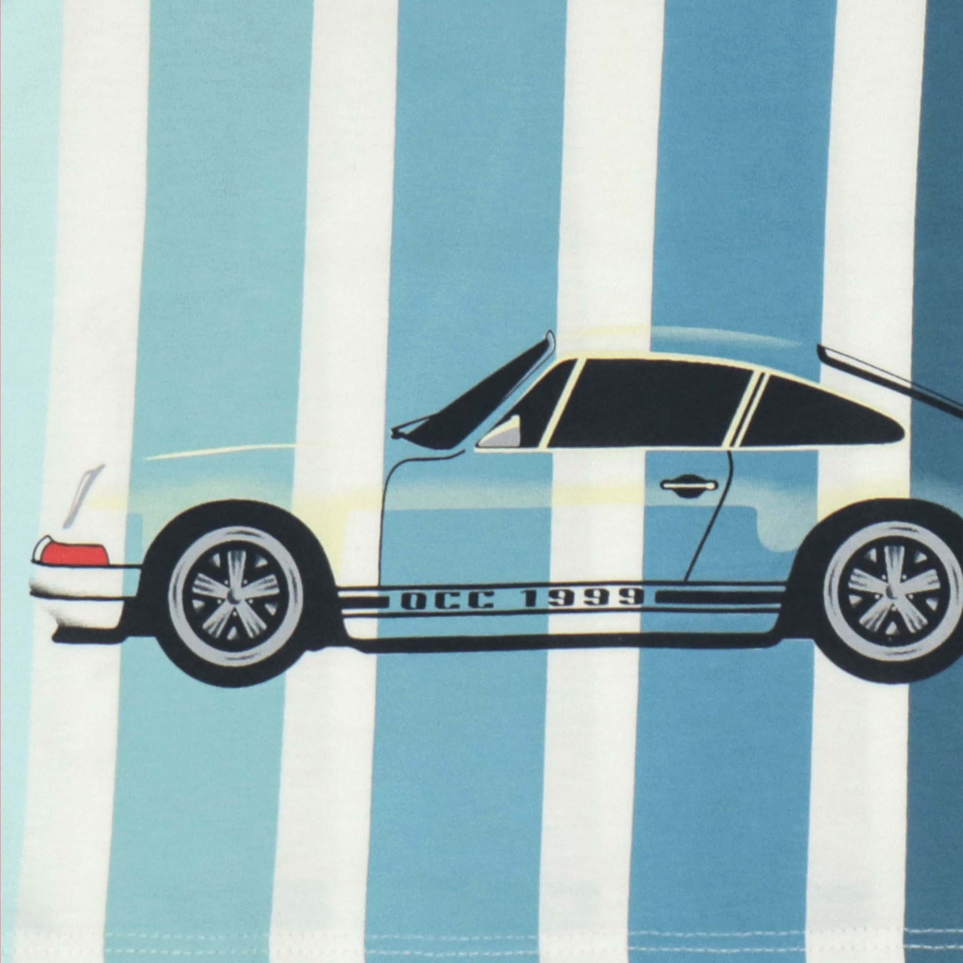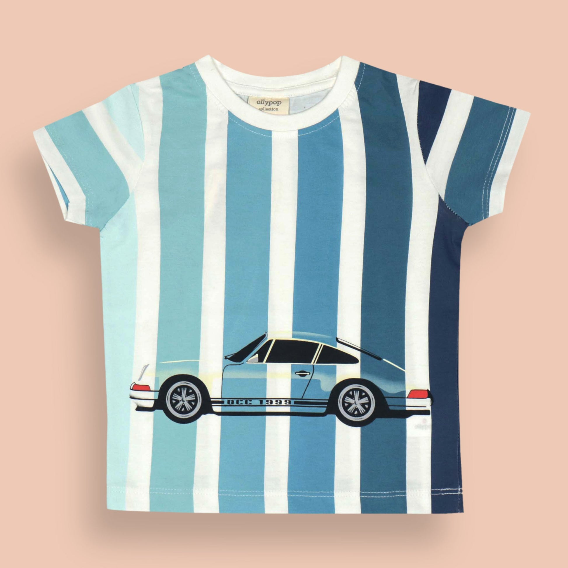 Ollypop Boys’ Striped Sinker Fabric T-Shirt – Light Blue, Half Sleeves, Car Print, Smart Outdoor & Sports Wear