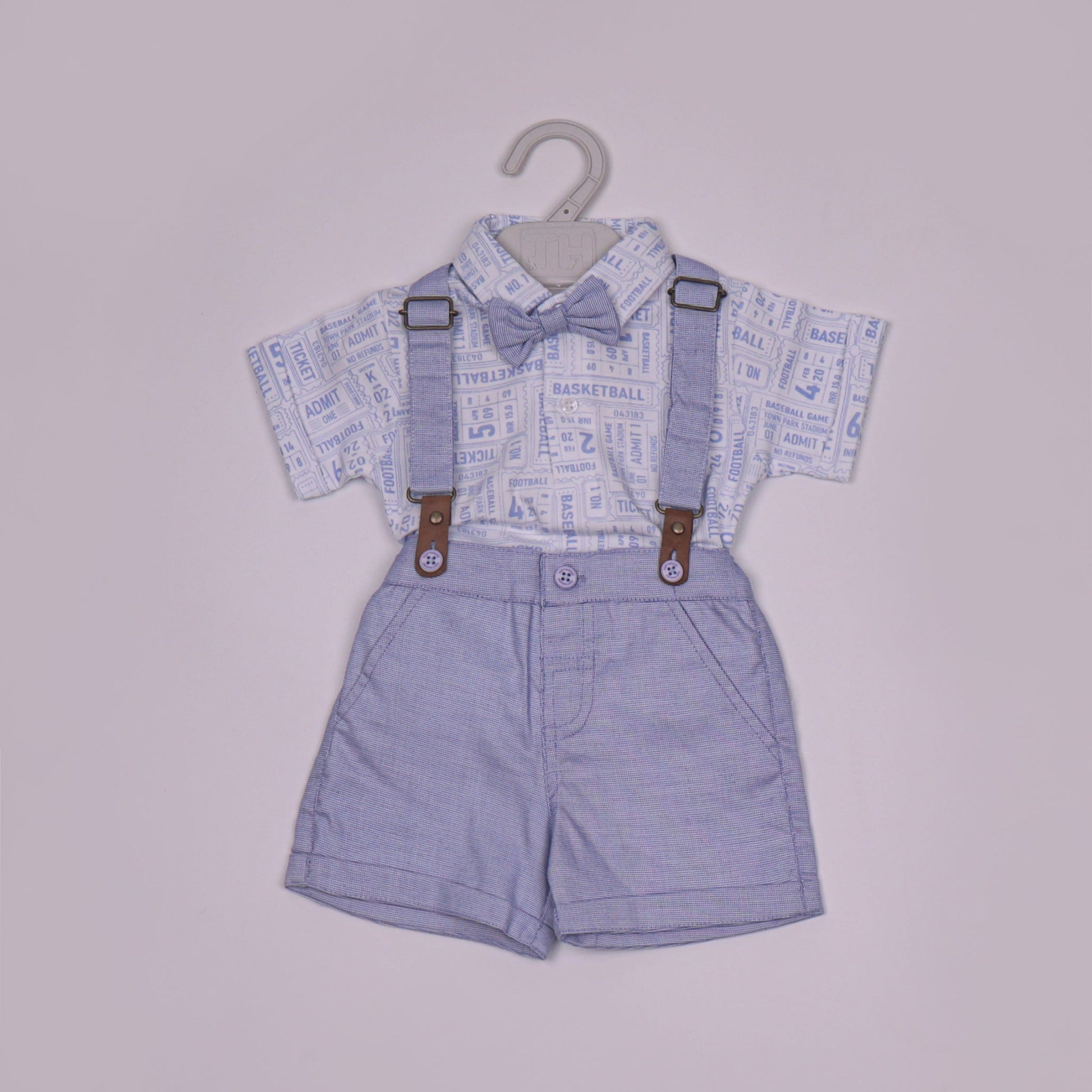 Toffyhouse Boys Light Blue Cotton Blend Printed Polo Collar Shirt & Mid-Thigh Dungaree Set