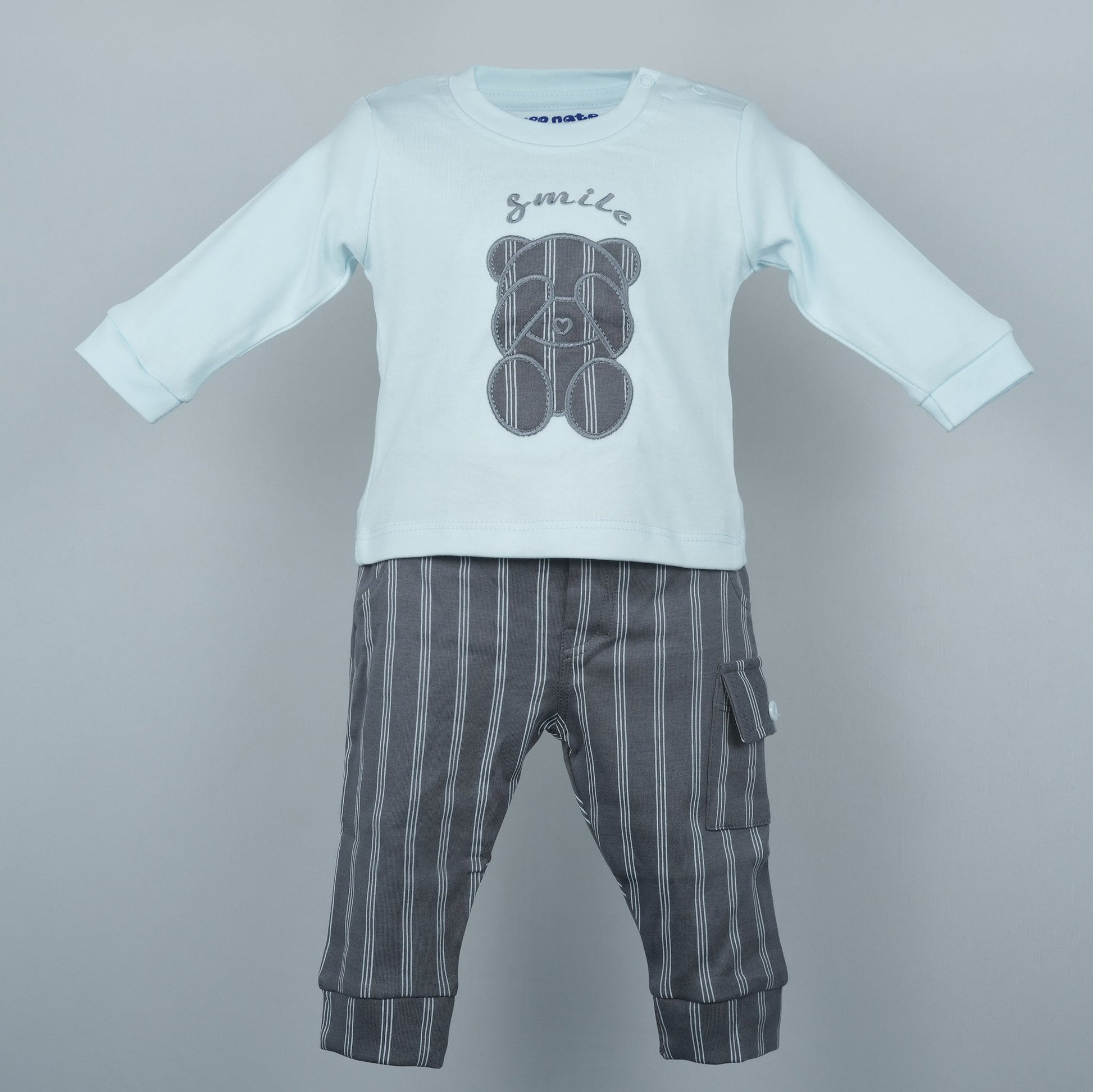 Smart Outdoor Light Blue T-Shirt & Jogger Set for Kids | Neo Nate Embroidered ‘SMILE