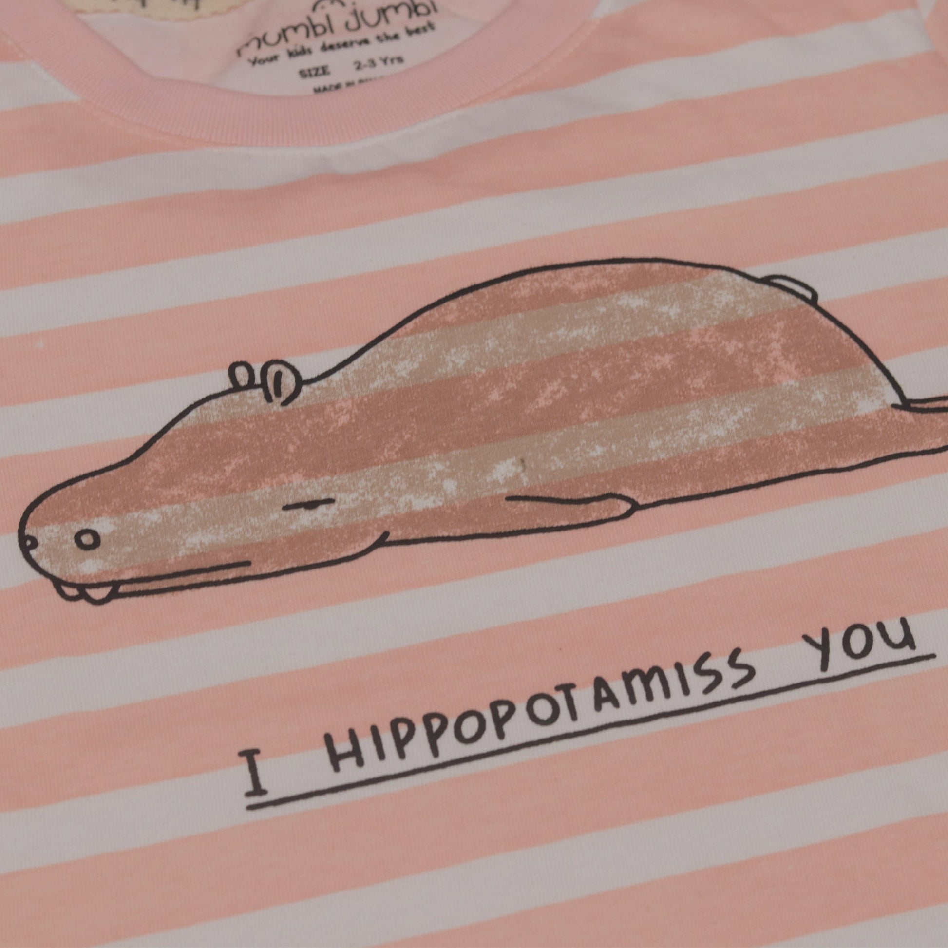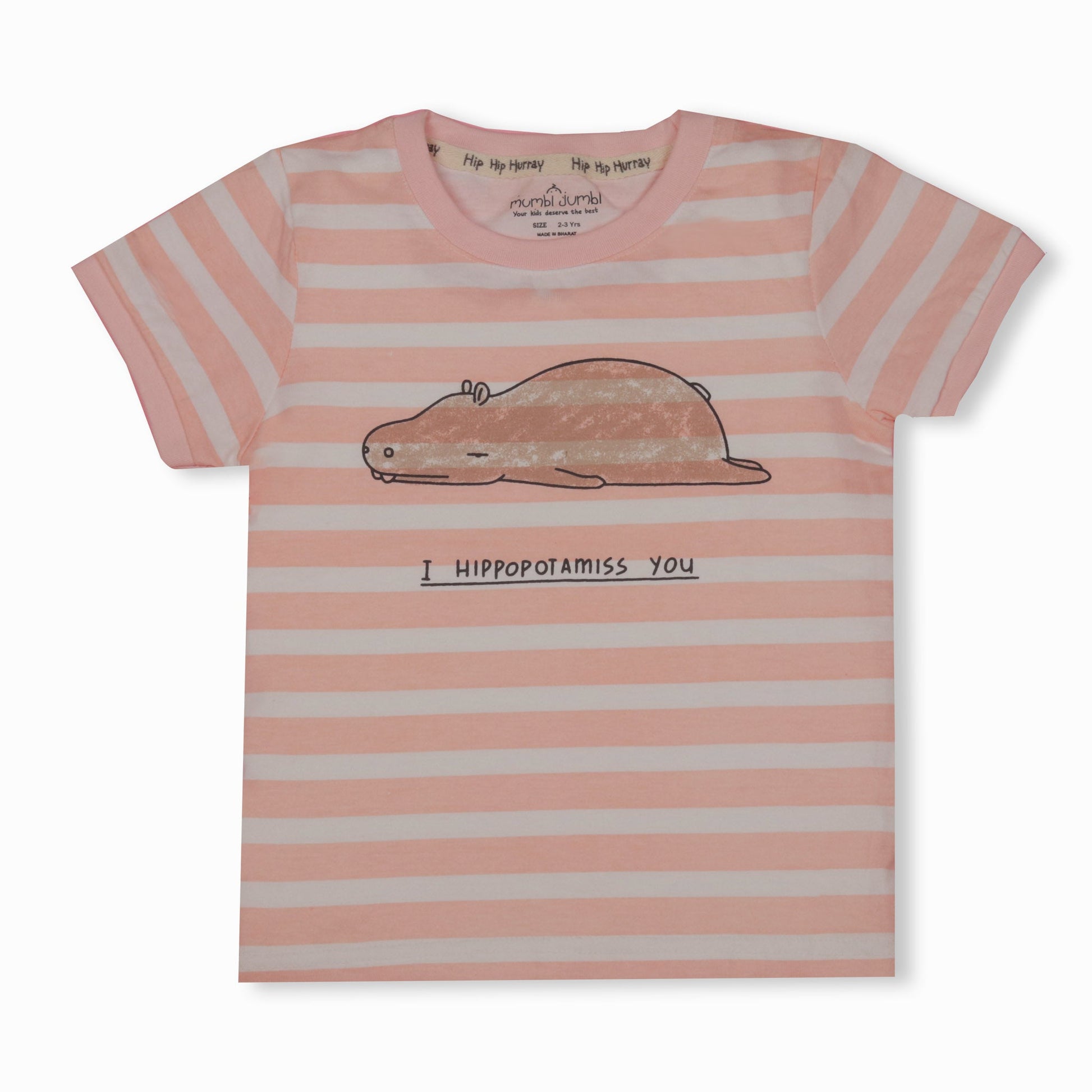 Mumbl Jumbl Unisex Soft Cotton Lazy Bone Half Sleeve T-shirt (Hippo, Peach)