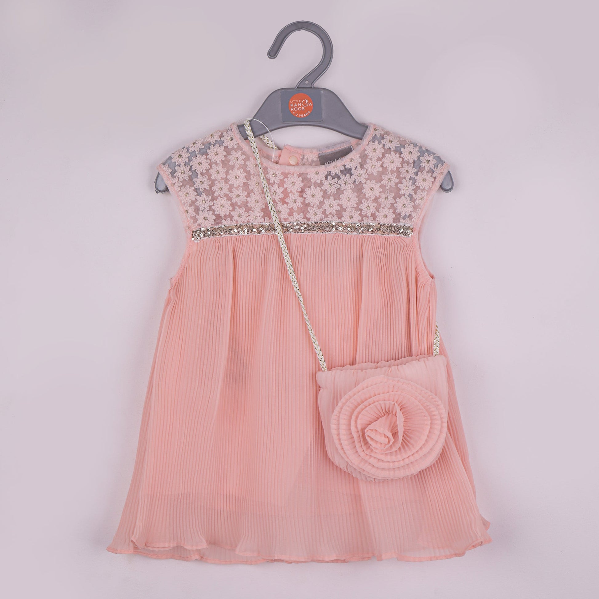 Elegant Peach – Girls’ Sleeveless Frock with Matching Sling Bag