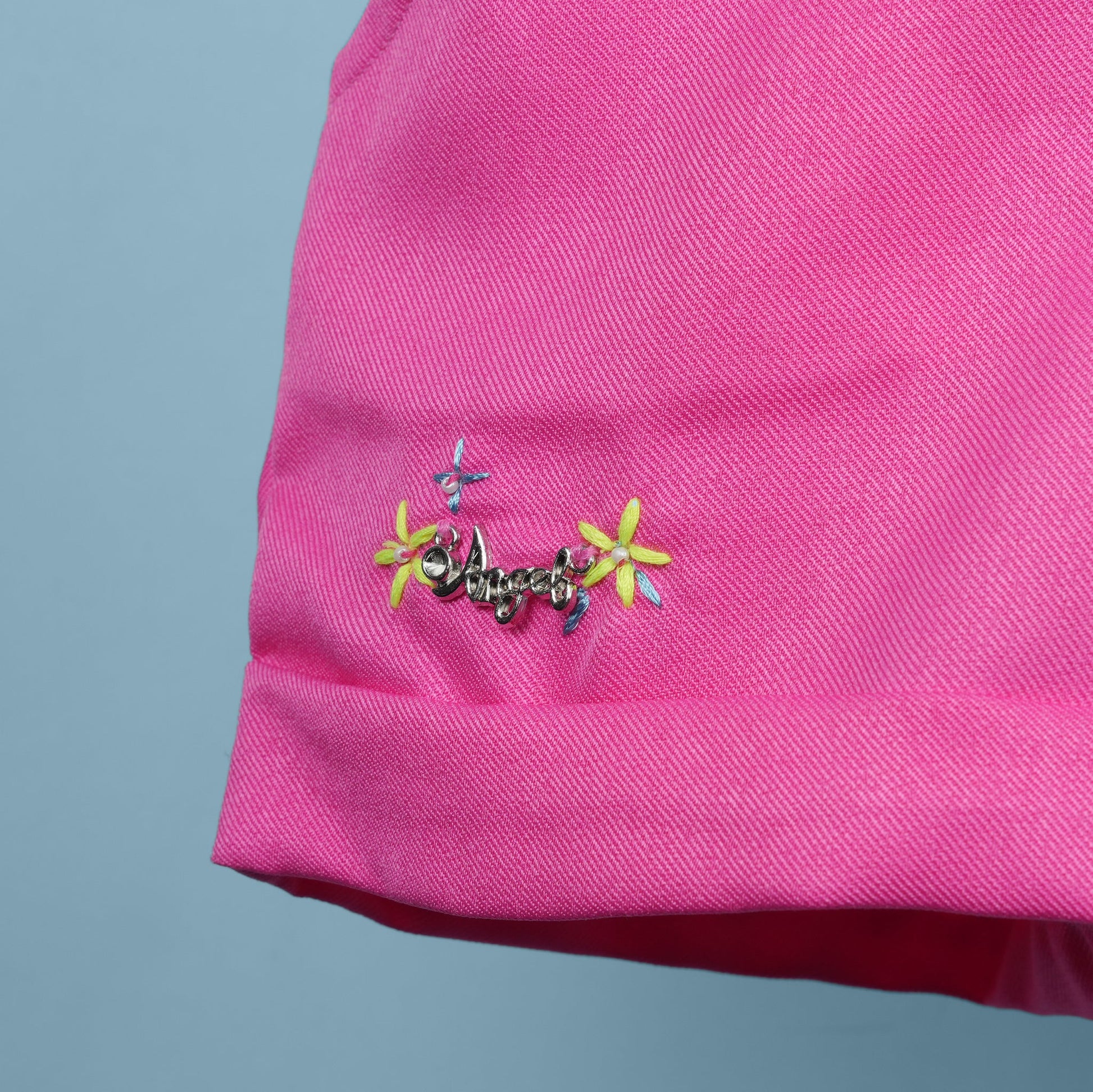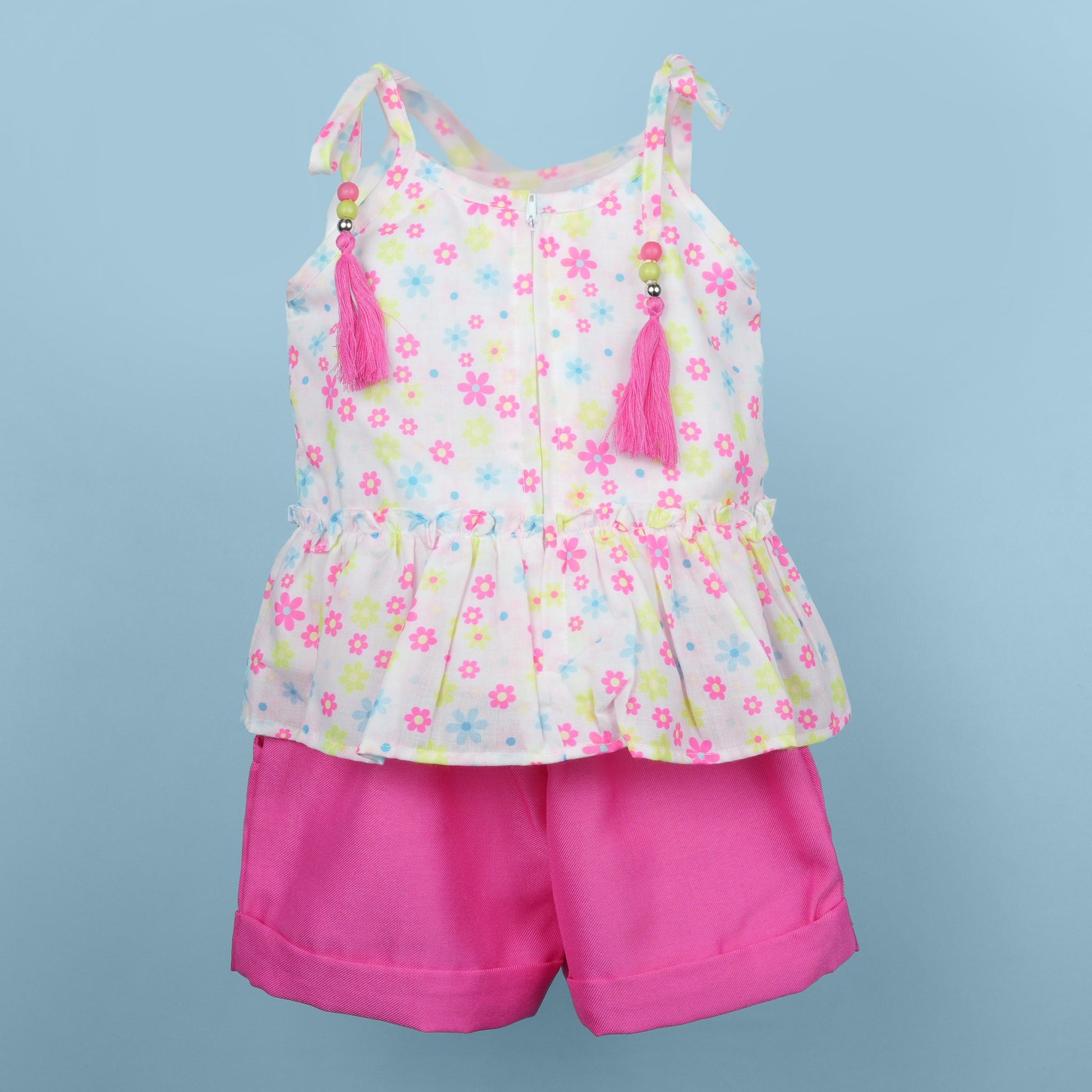 DW Girl's Dark Pink 'Angel' Square Neck Top & Shorts Set