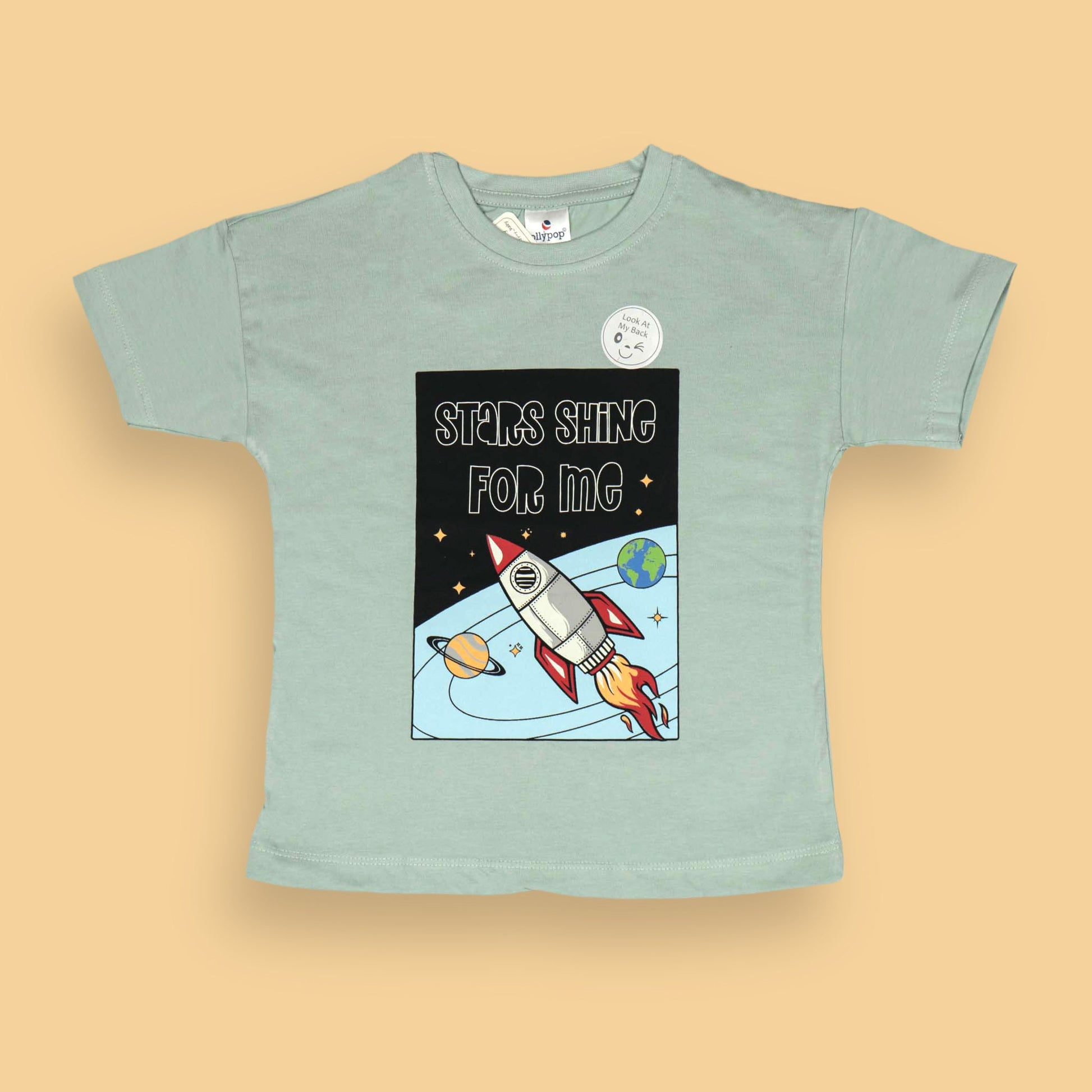 Ollypop Boys' Light Green Sinker Half Sleeve T-Shirt – "STARS SHINE FOR ME" Motivational Print, Cotton Fabric