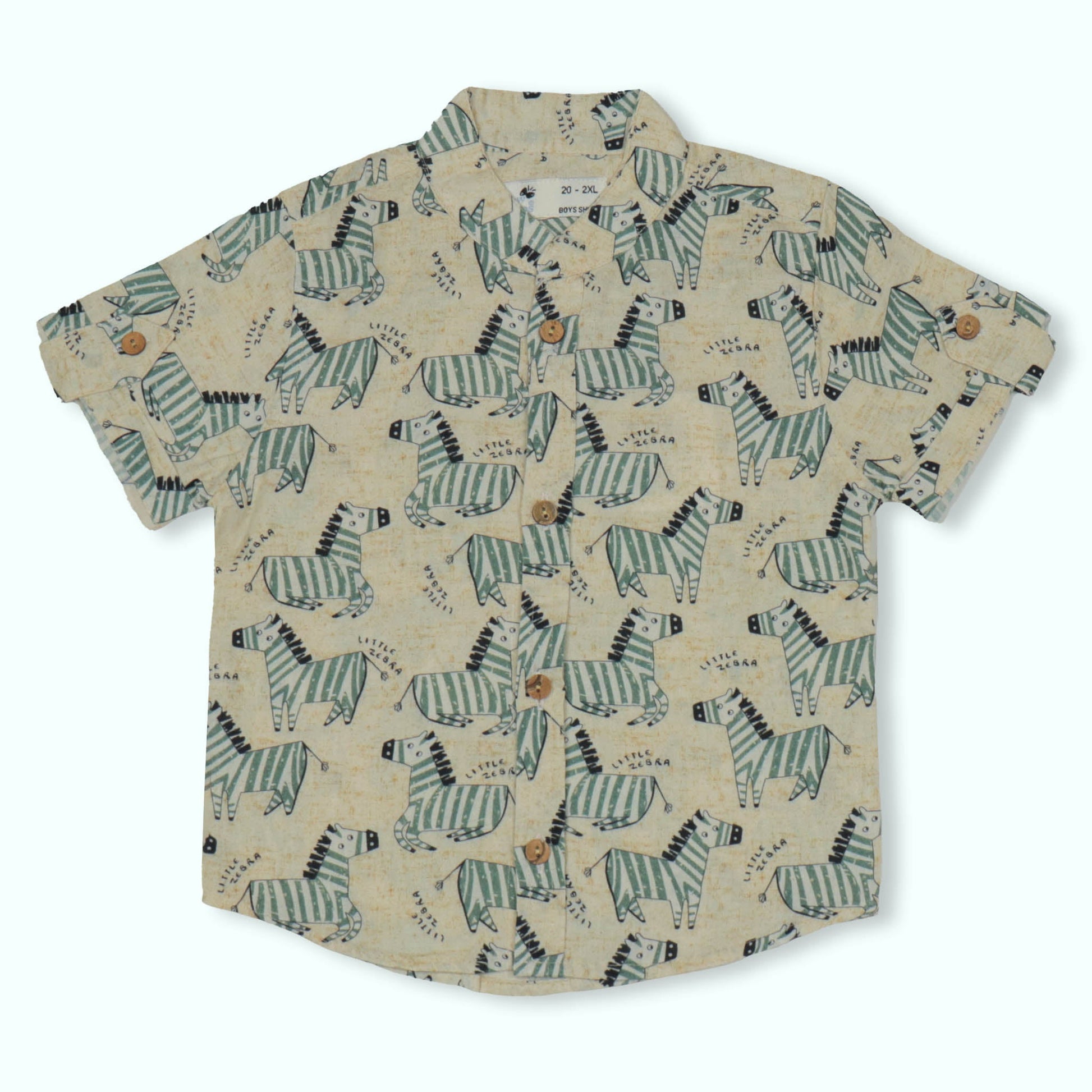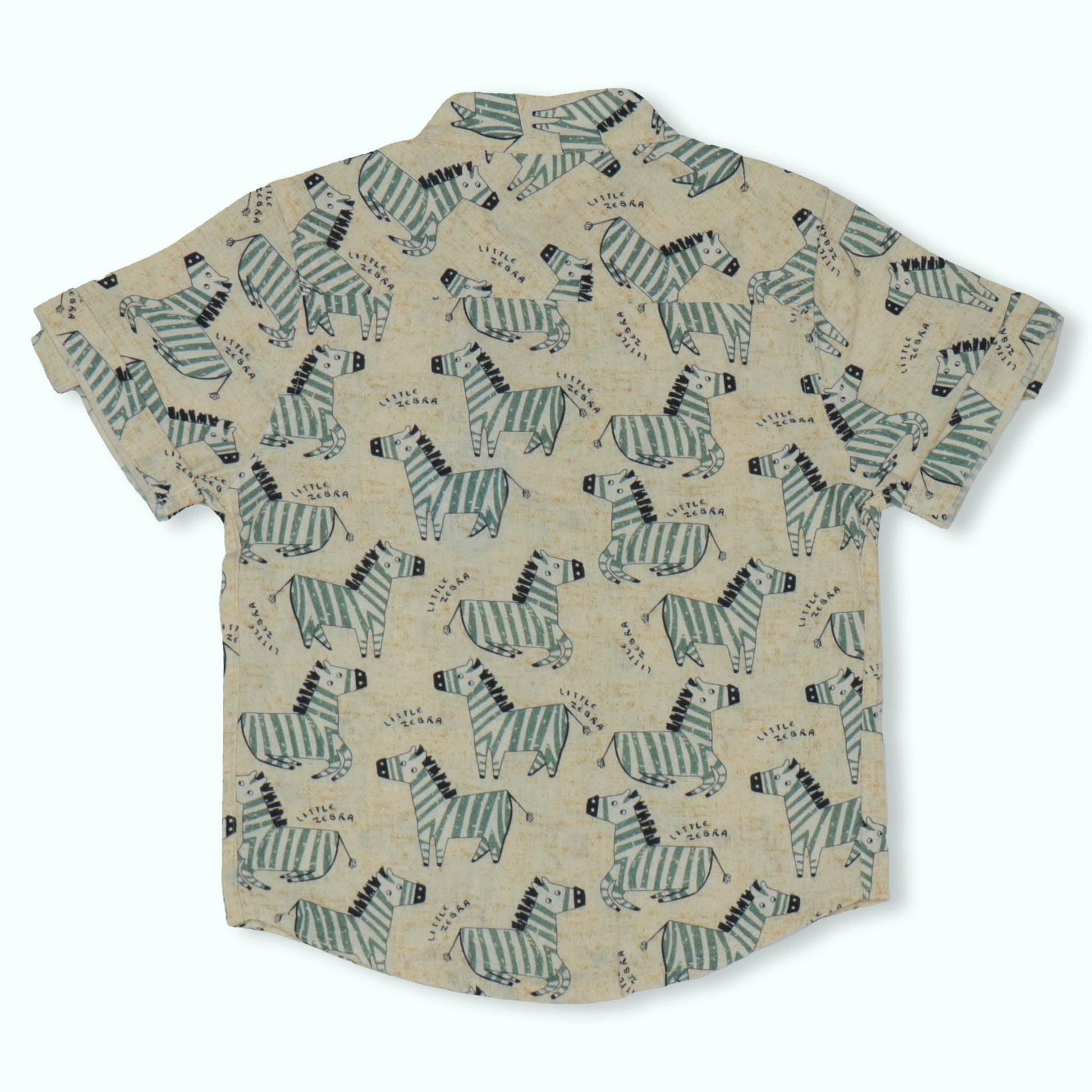 Dew Drop Boys' Mandarin Collar Shirt with Zebra Print – Soft Fabric, Half Sleeves, Summer Essential (Light Green)