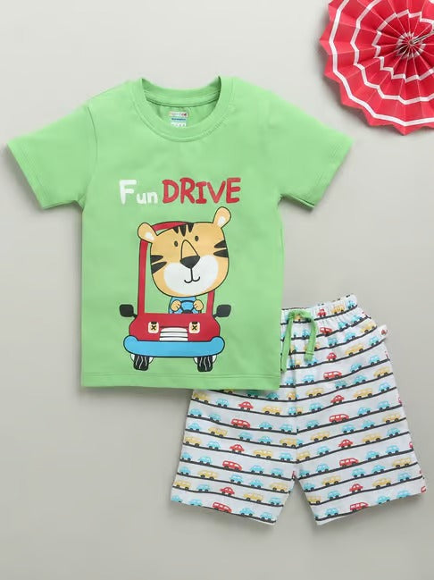 The Light Green Essential: Drawstring Shorts & Placement Print Set