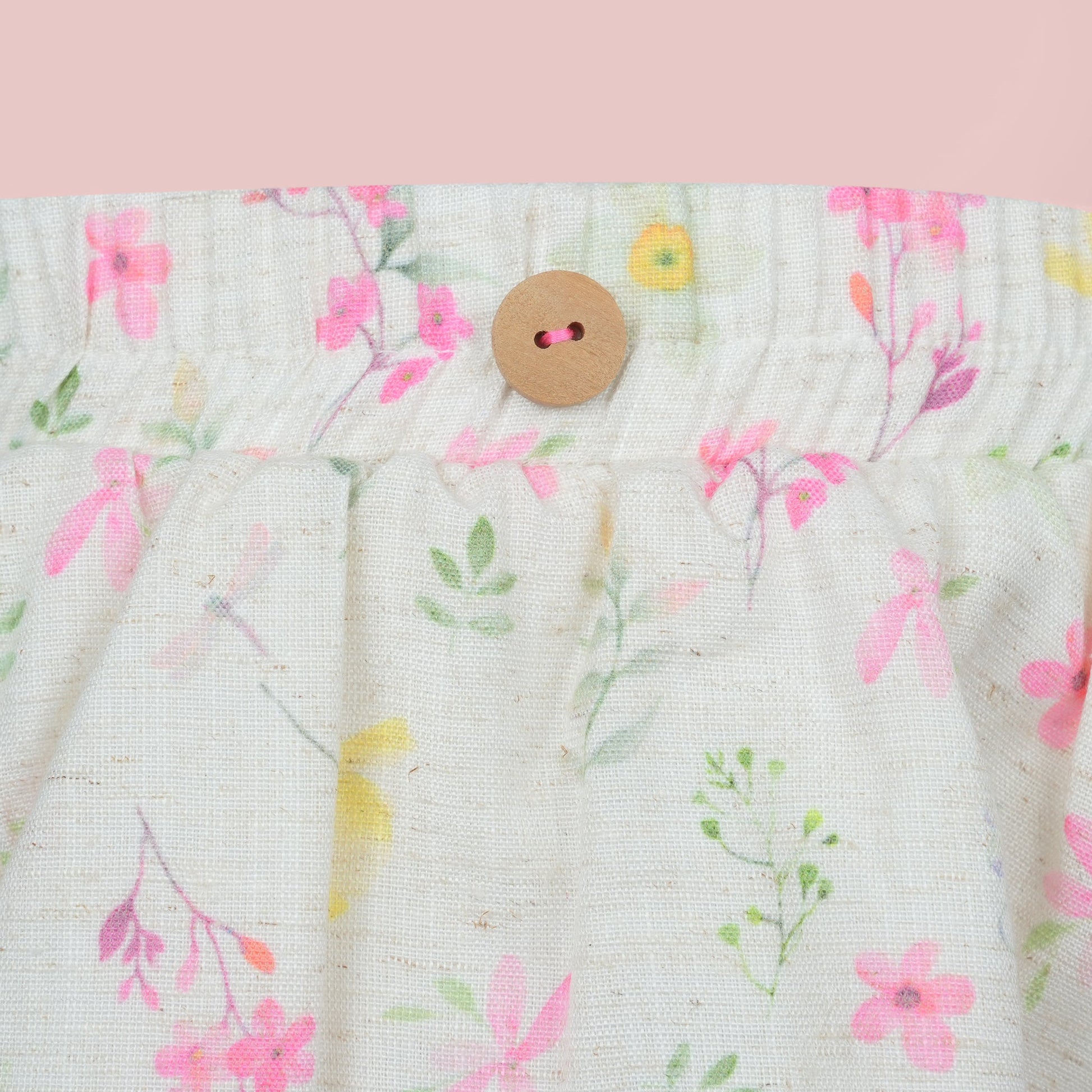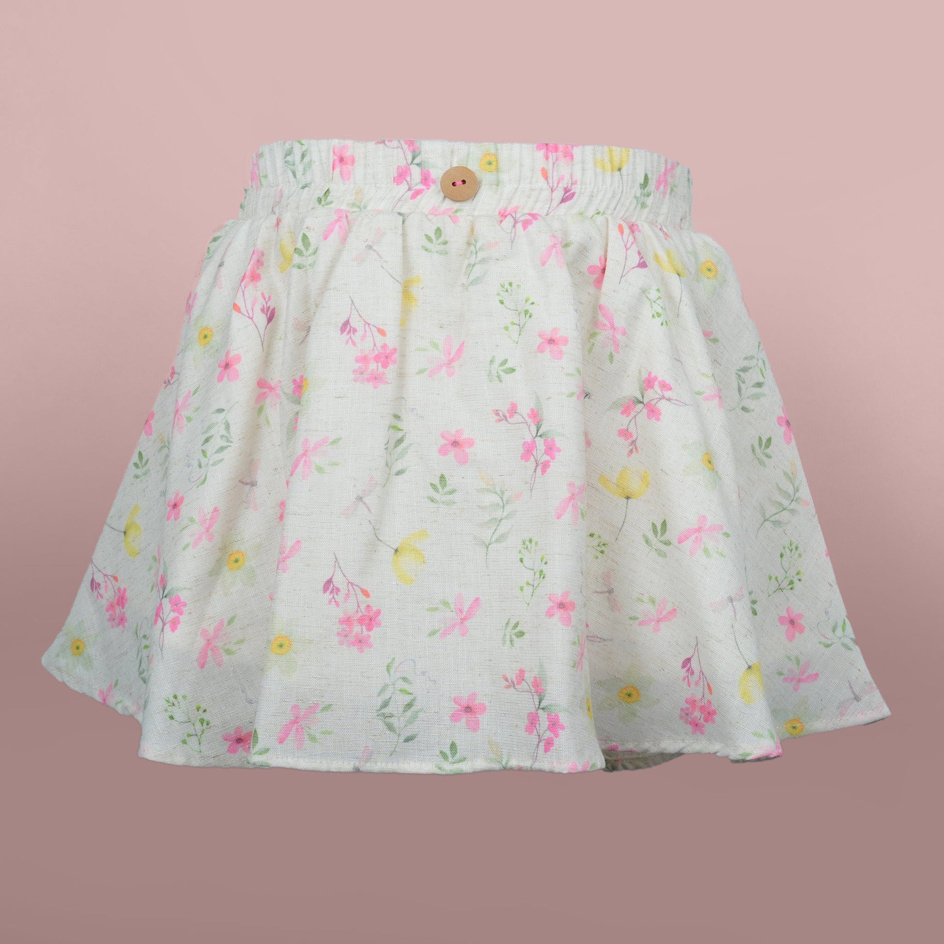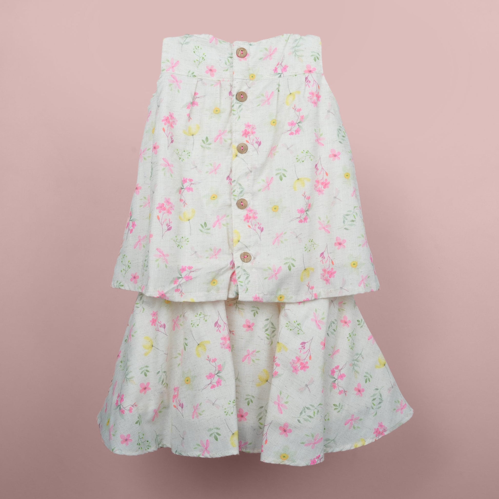 DW Girl's Sleeveless Square Neck Top & AOP Skirt Set (Beige)