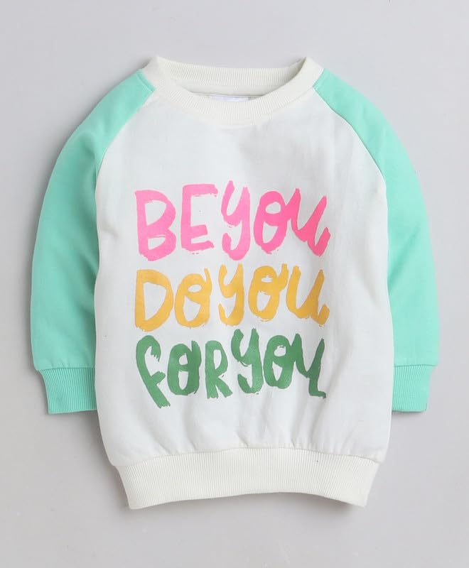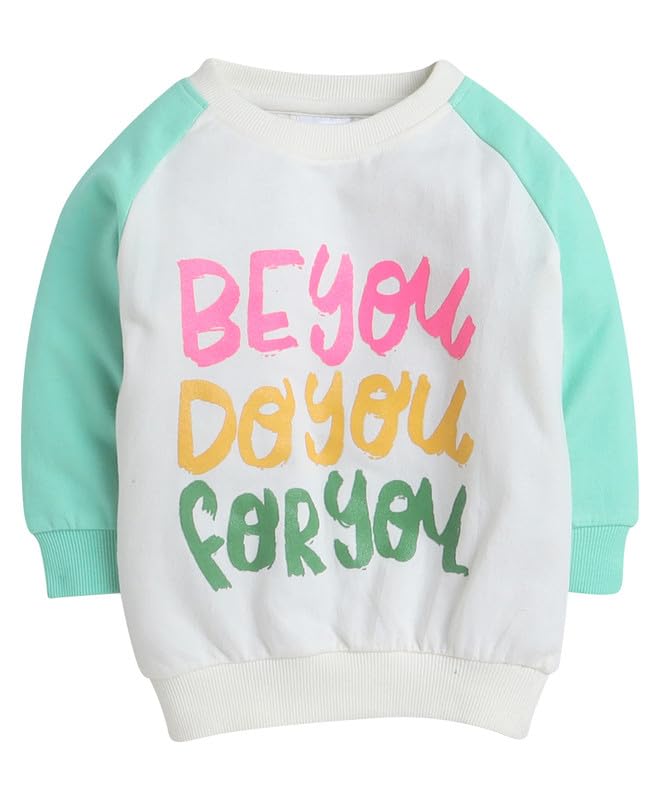 Adorable Girls Off‑White Sweatshirt – Cotton, Full Sleeves, Motivational Quote (Party & Winter Wear)