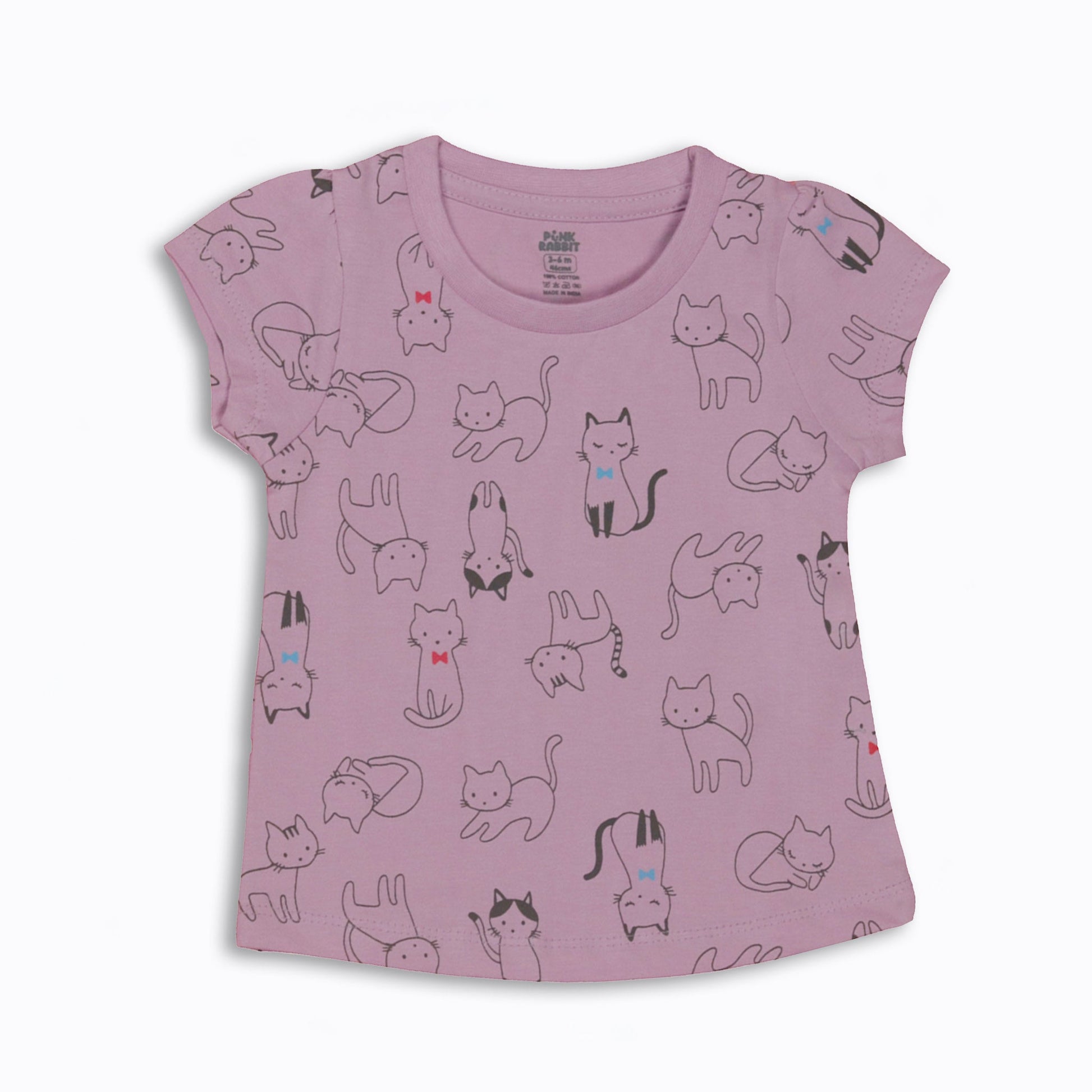 Pink Rabbit Girls Lilac Printed Cotton Cap Sleeve T-shirt