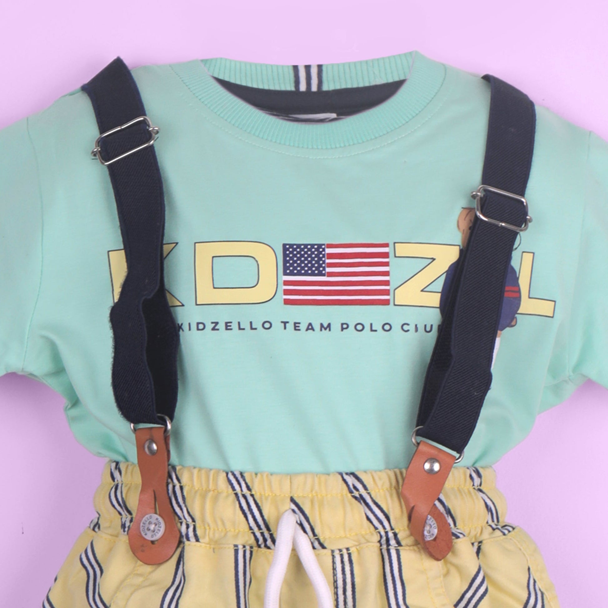 Cool & Playful – Boys’ Mint Cotton Outfit with Shorts & Braces