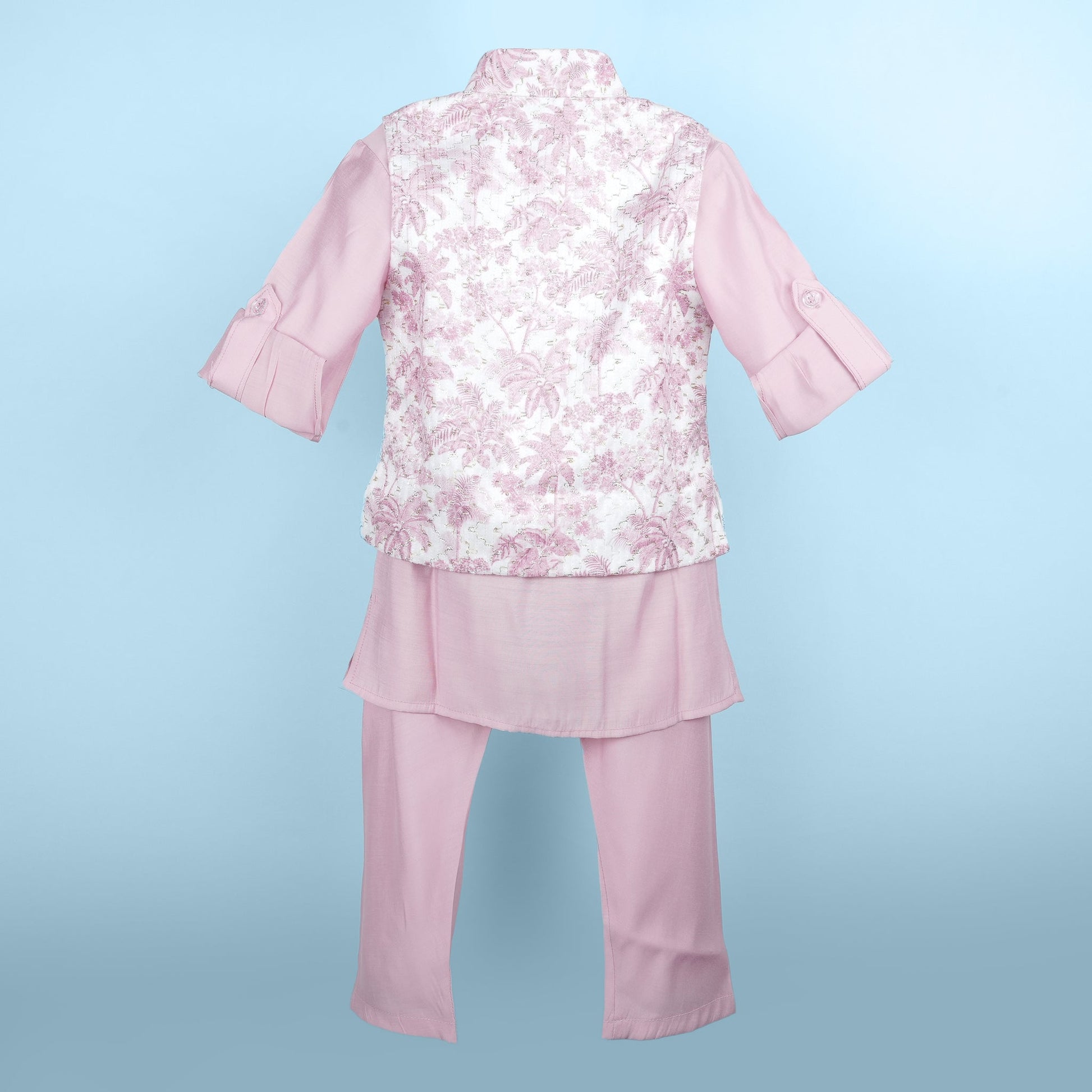 Aagam Boys’ Embroidered Kurta & Jacket Set – Light Pink