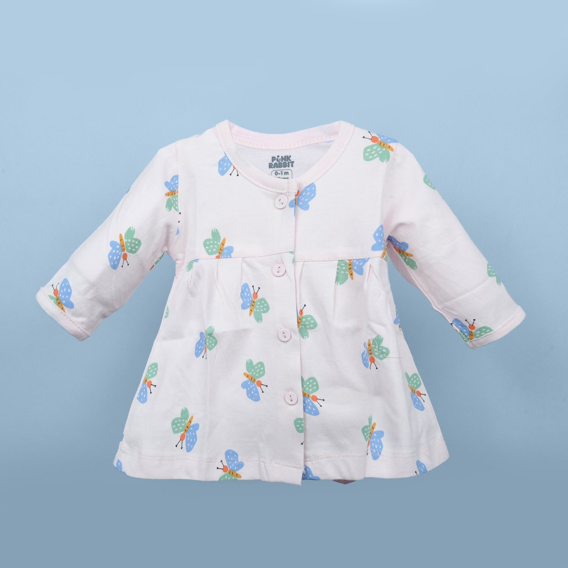 Full-Sleeve Cotton Delight: Front-Button All Over Prints Frock