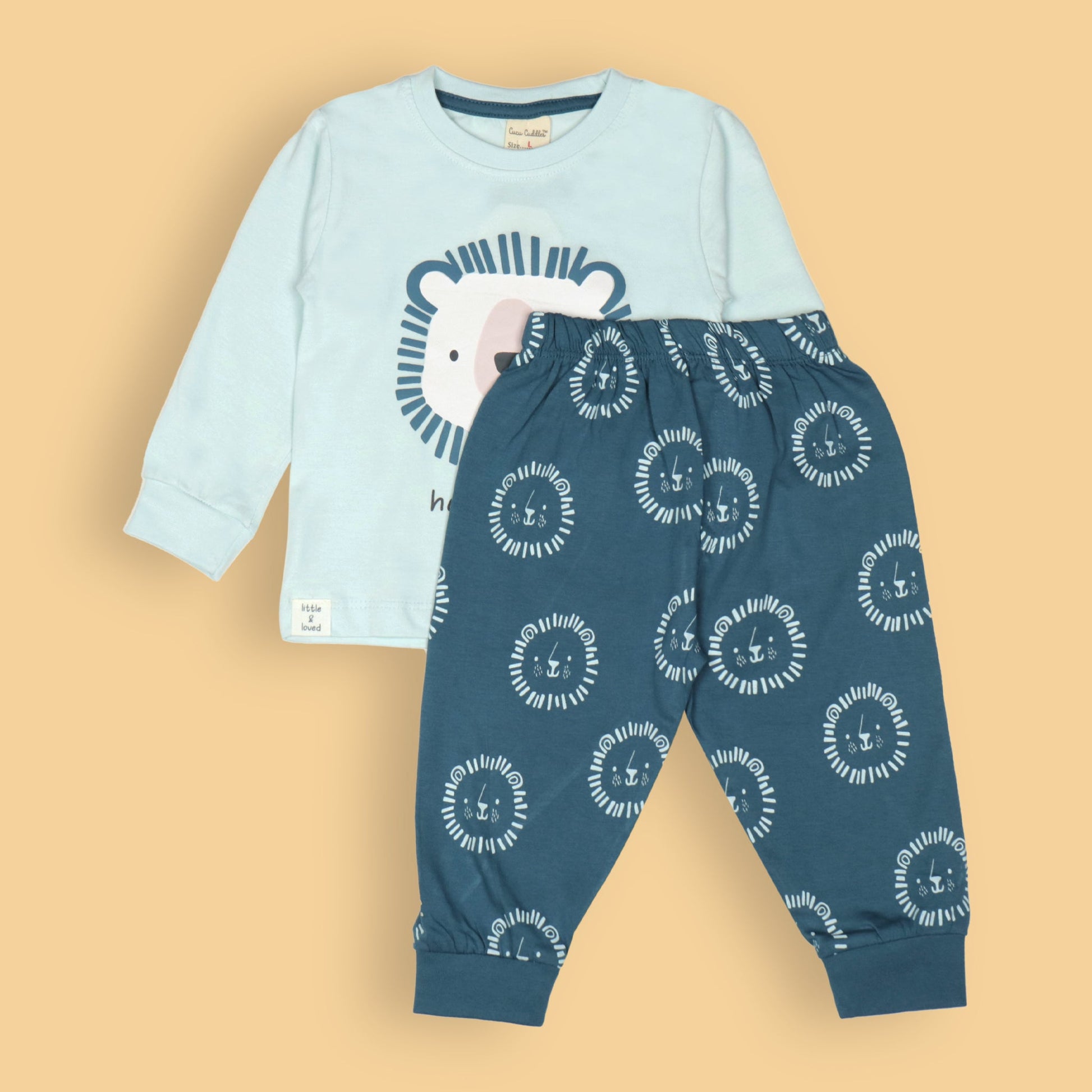 Happy Friends Set by Cucumber – Turquoise Full Sleeve Tee & Teal Blue Jogger Pants, Soft Cotton Comfort