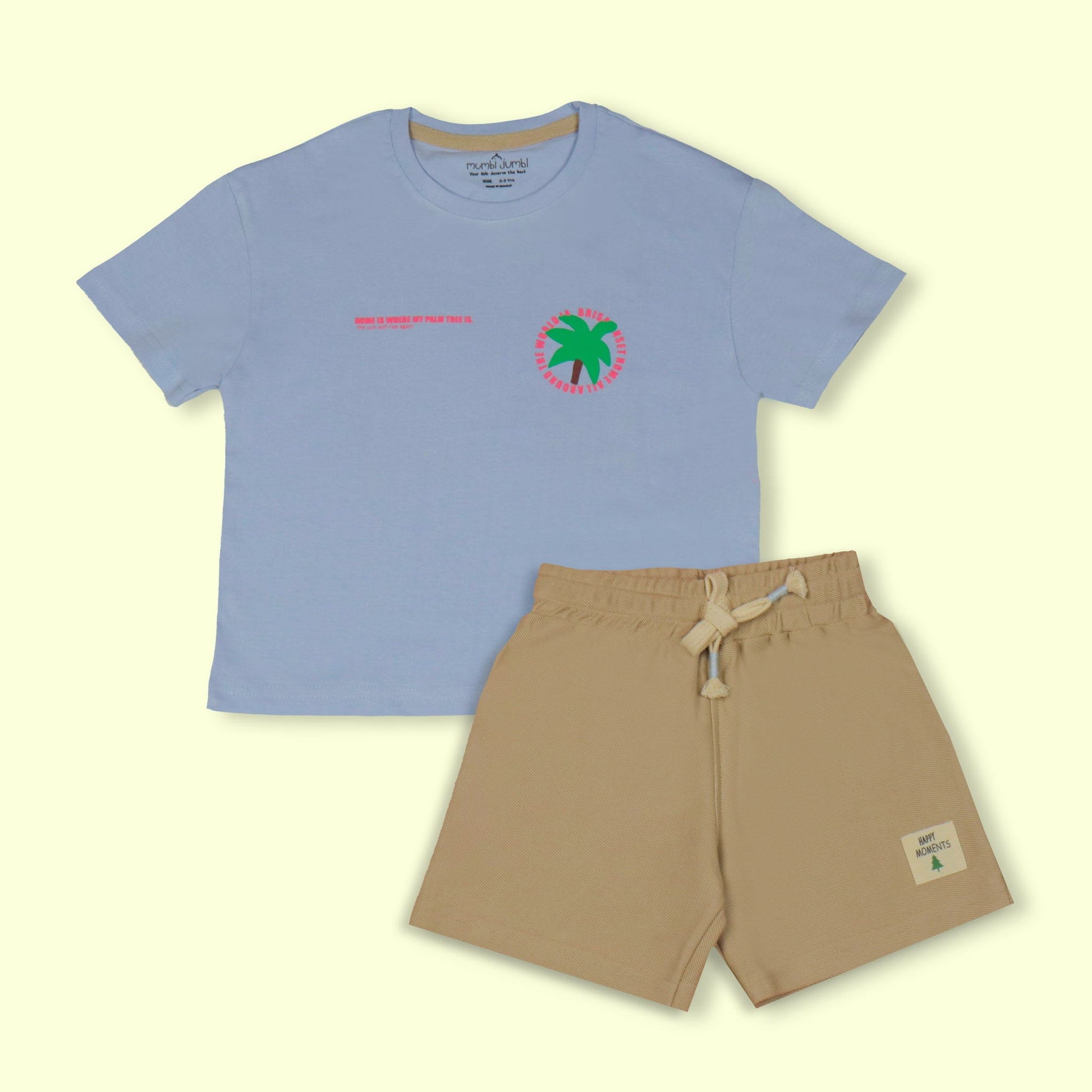 Pack Content:1 T-shirt (Teal Blue) & 1 Shorts (Cream)