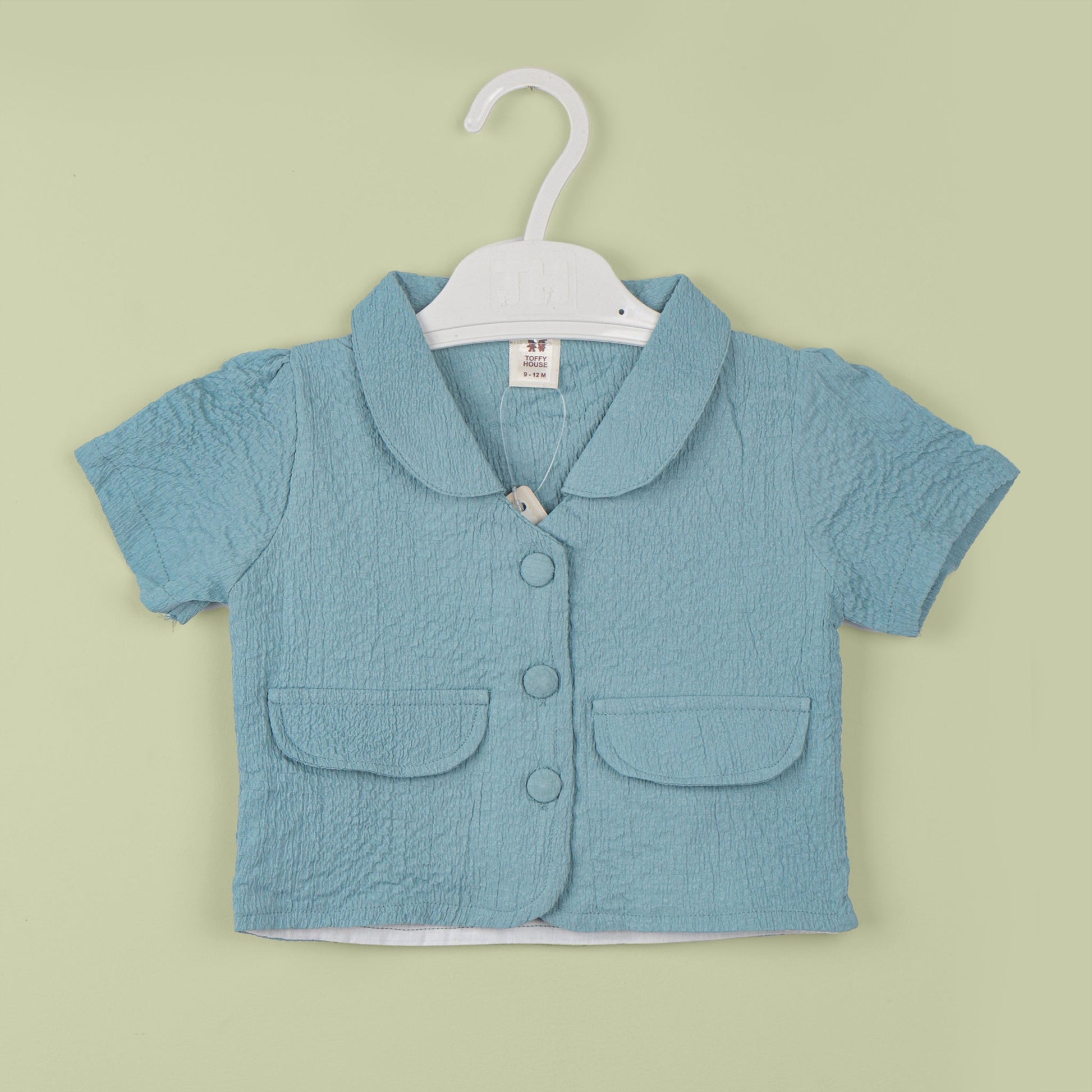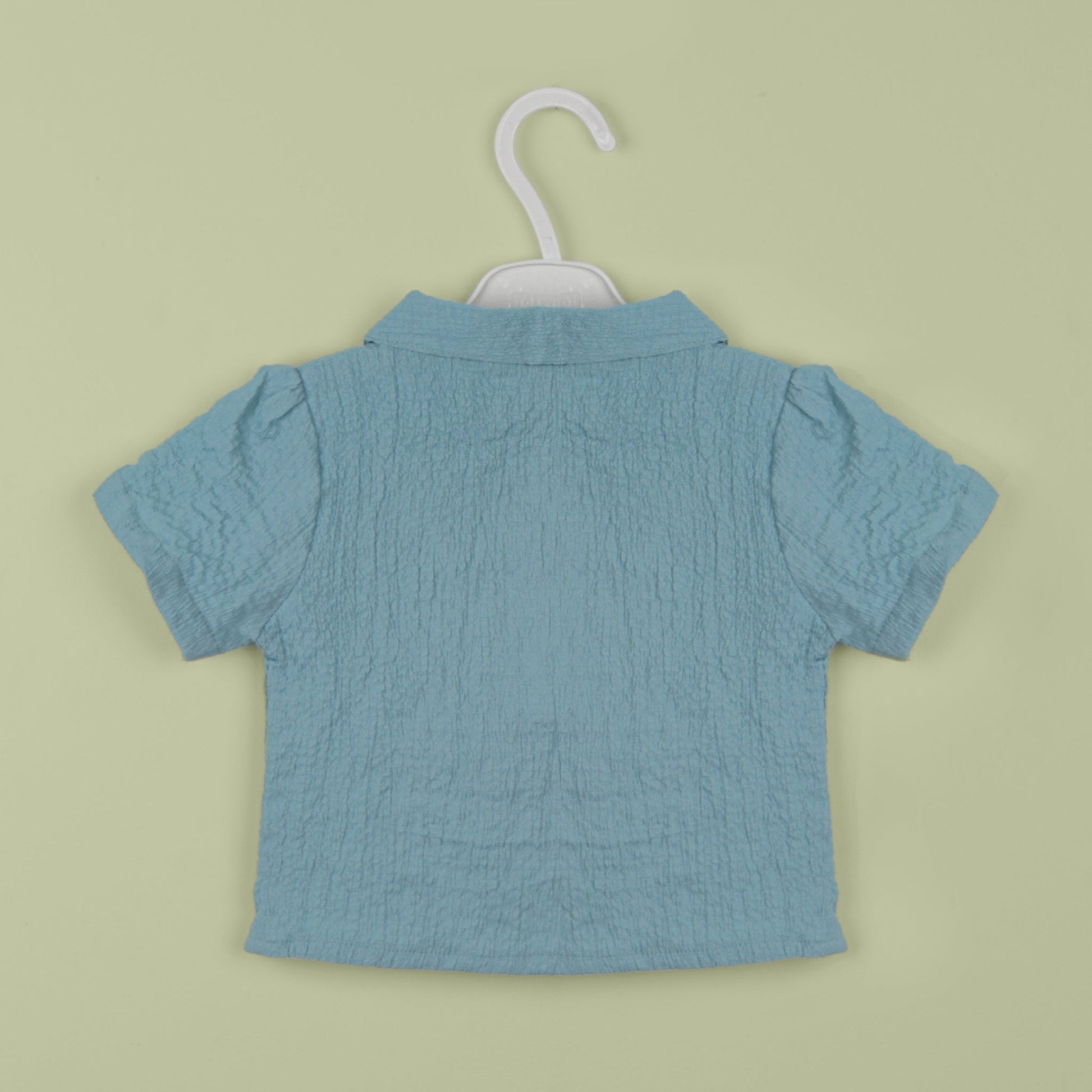 Toffyhouse Girls’ Teal Blue Cotton Blend Polo Collar Top & Knee-Length Shorts Set
