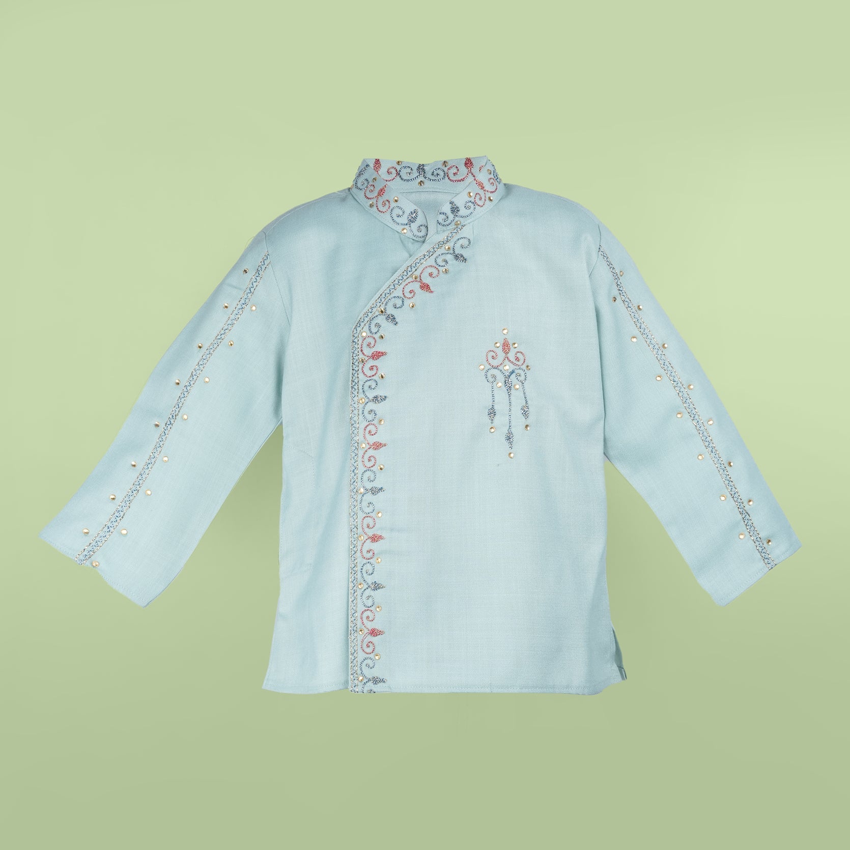 Archies Boys’ Cotton Dhoti Kurta Set with Embroidery – Teal Blue Festival Wear