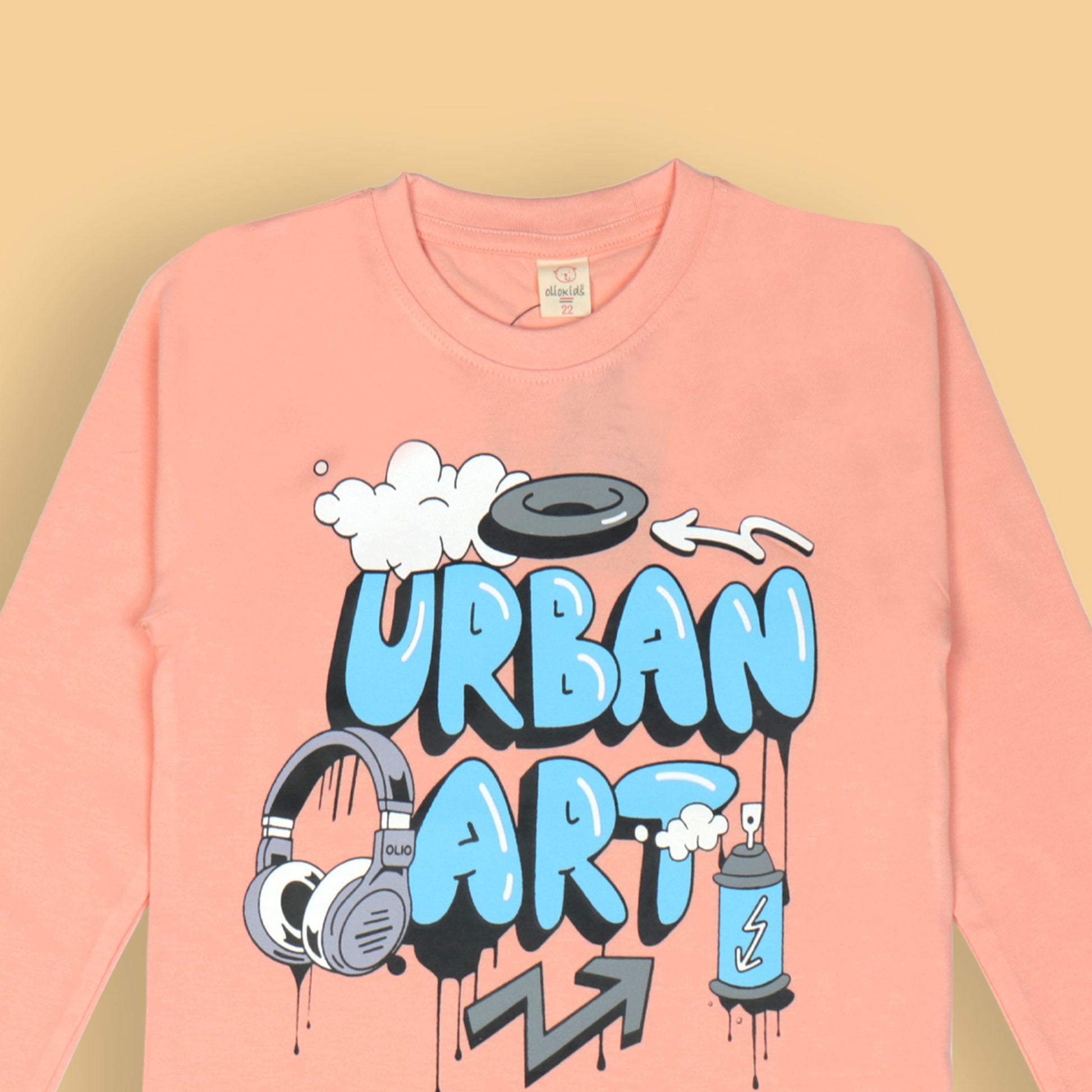 OlioKids Boys’ Dark Peach Full Sleeve Tee – URBAN ART Revolt Print, Extra Soft Cotton, Outdoor & Party Essential