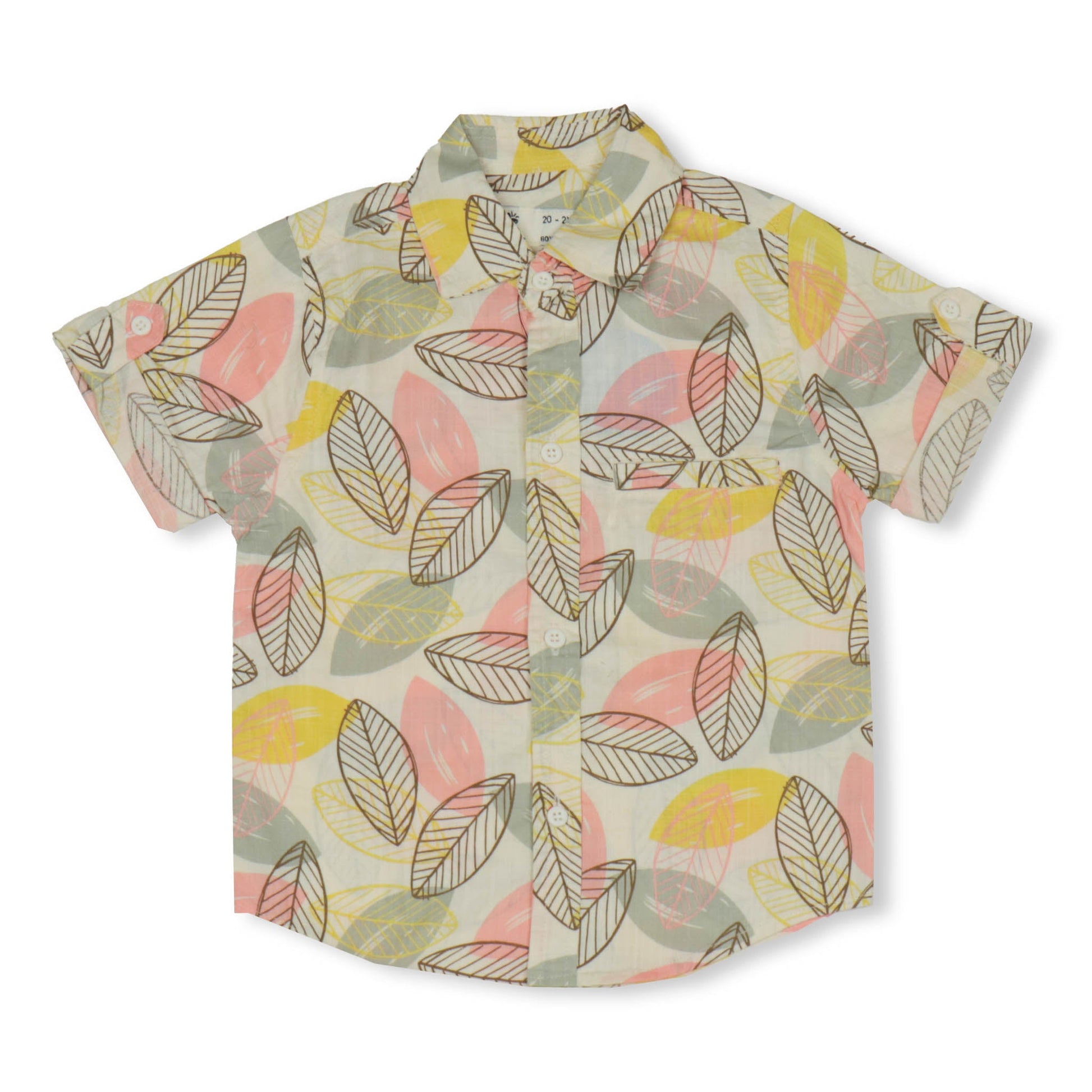 Dew Drop Boys' Cotton Shirt with Leaves Print – Soft Fabric, Half Sleeves, Summer Essentials (Peach)