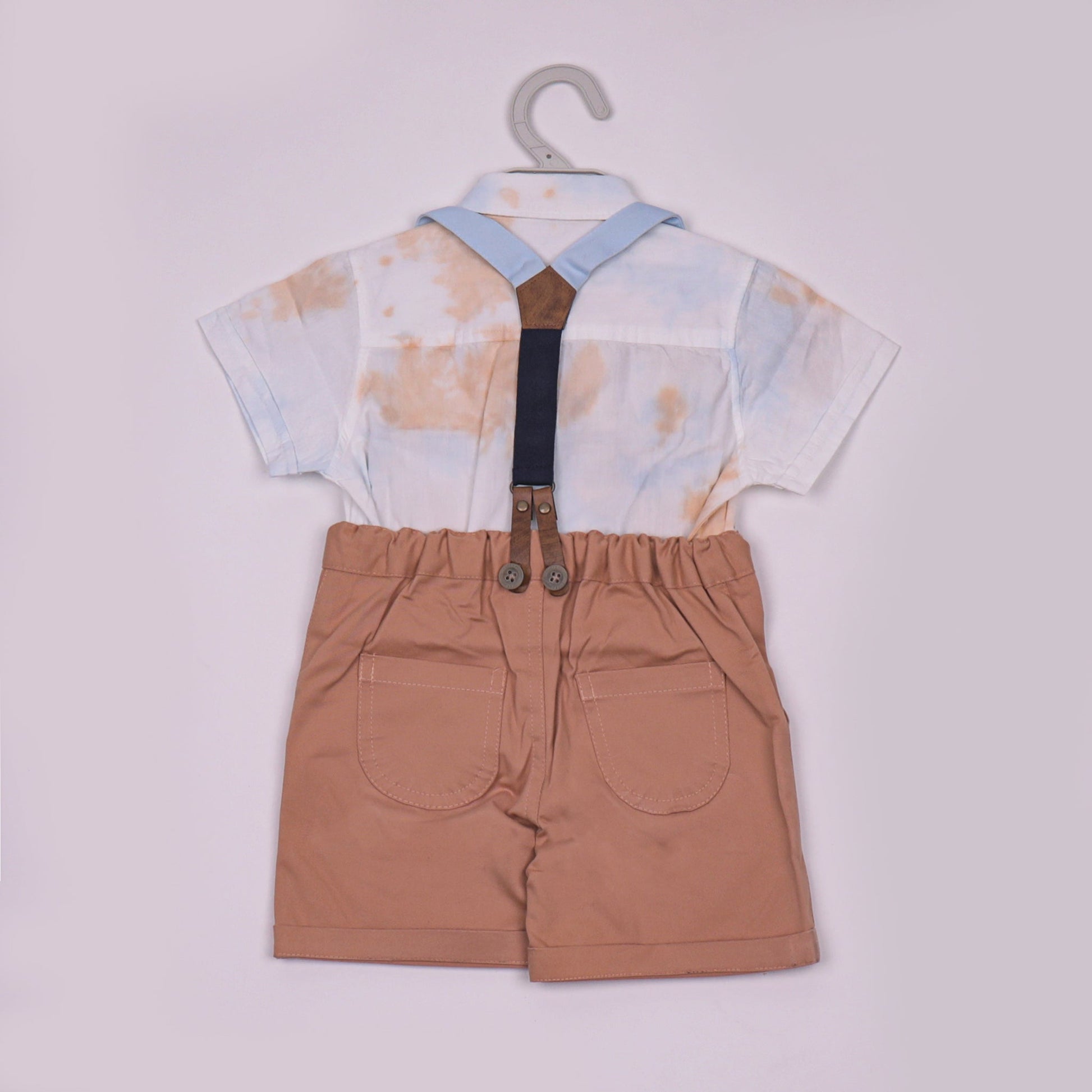 Toffyhouse Boys’ Fawn Checked Shirt & Cotton Dungaree Set