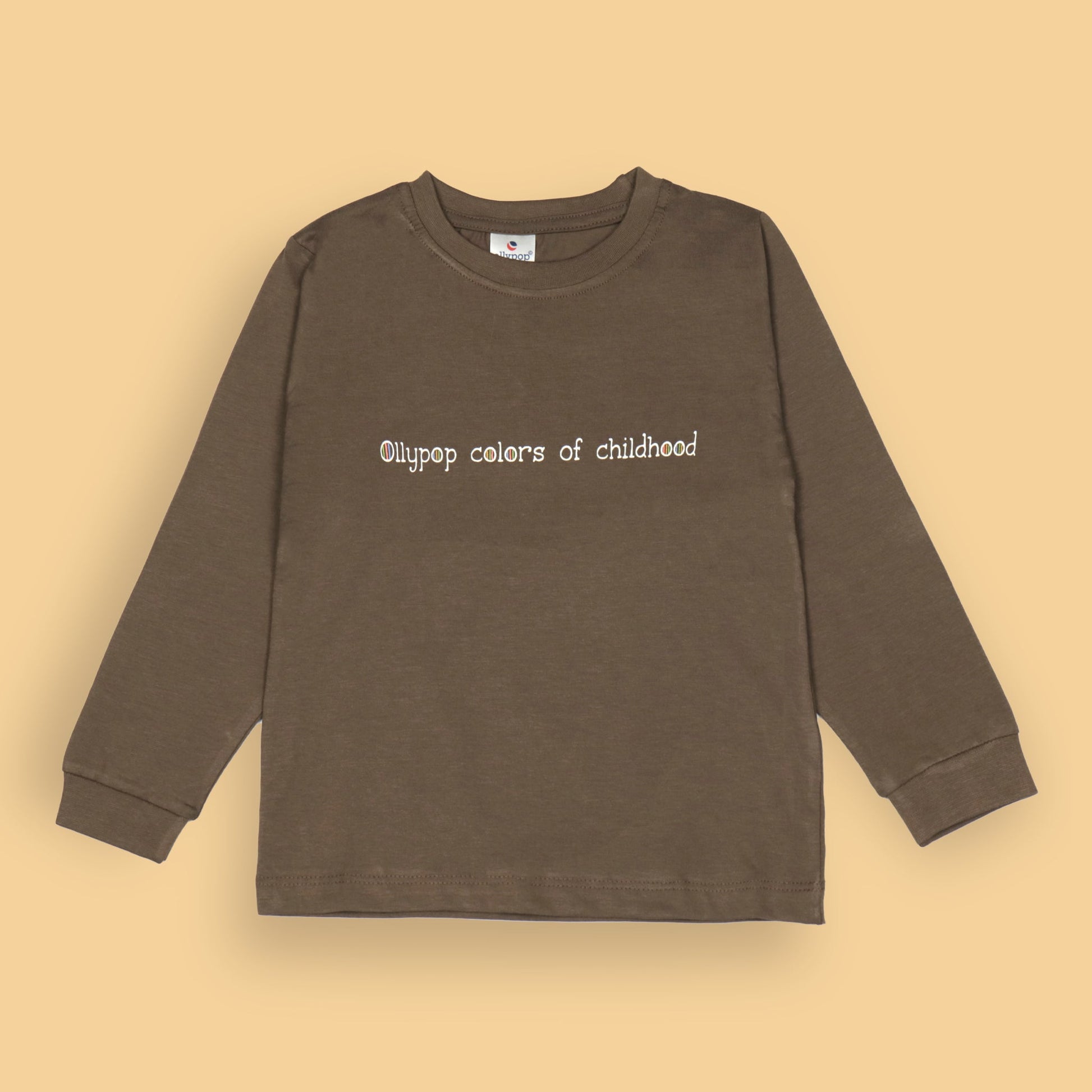 Ollypop Essentials T-Shirt – Breezy Breathable Sinker, Full Sleeves, Placement Print for Happy Kids (Brown)
