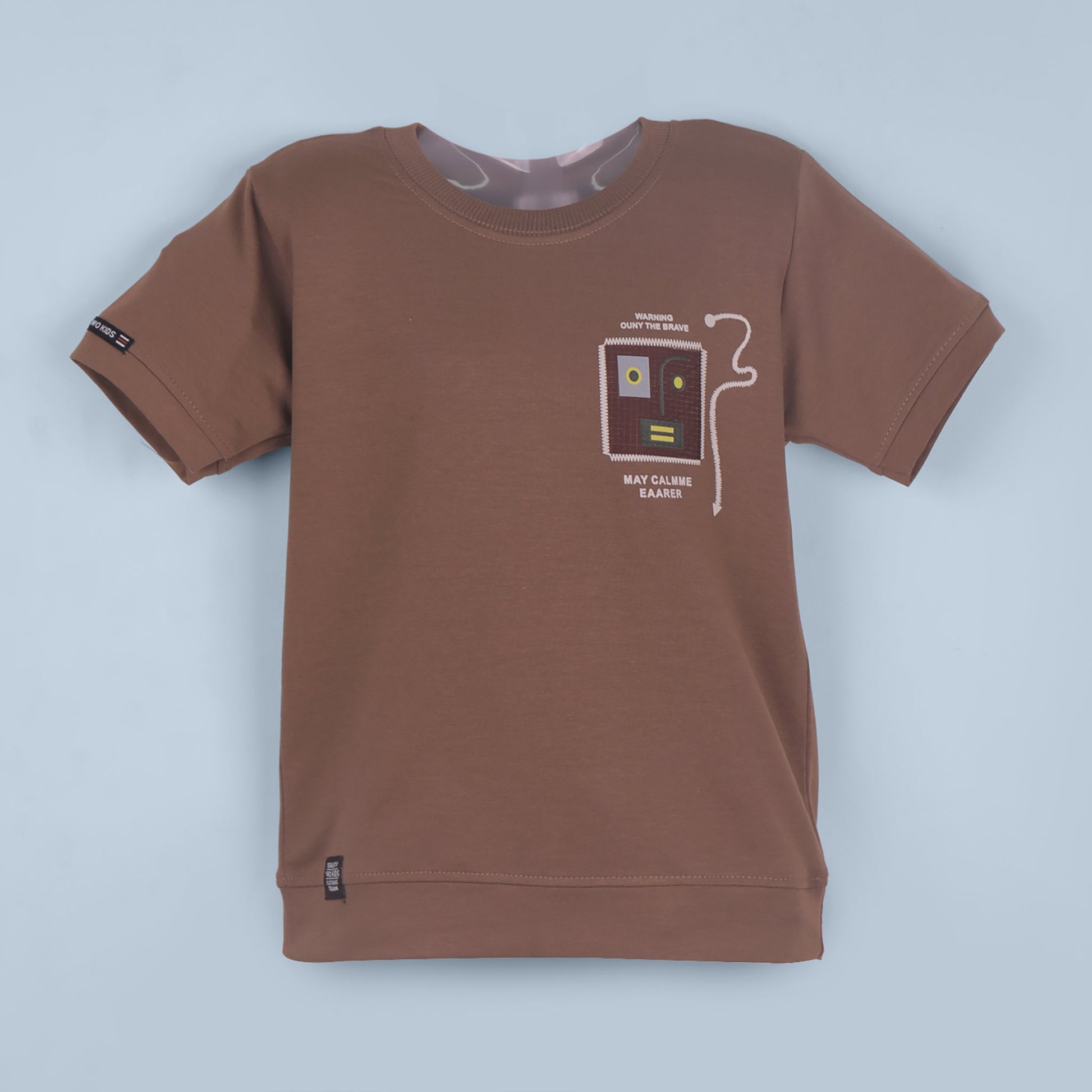 Everyday Cool – Boys’ Brown Cotton Blend Outfit with Denim Shorts