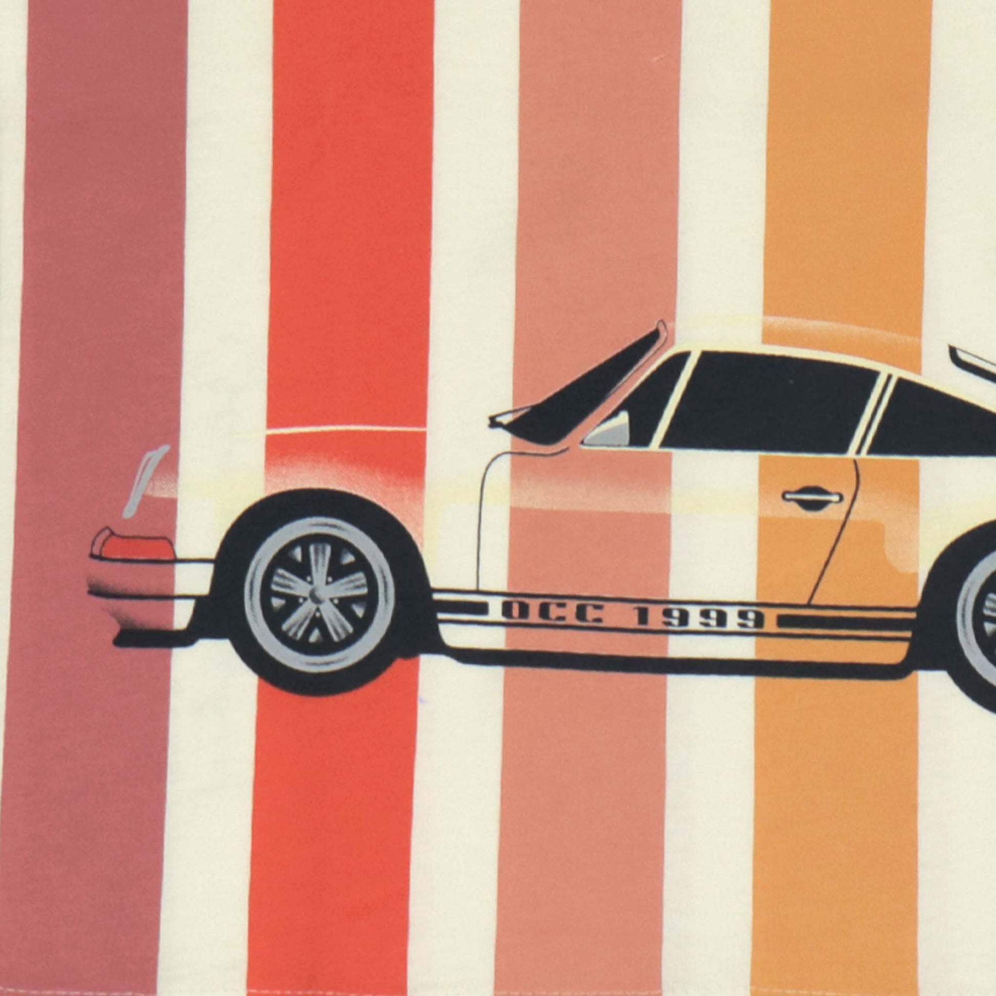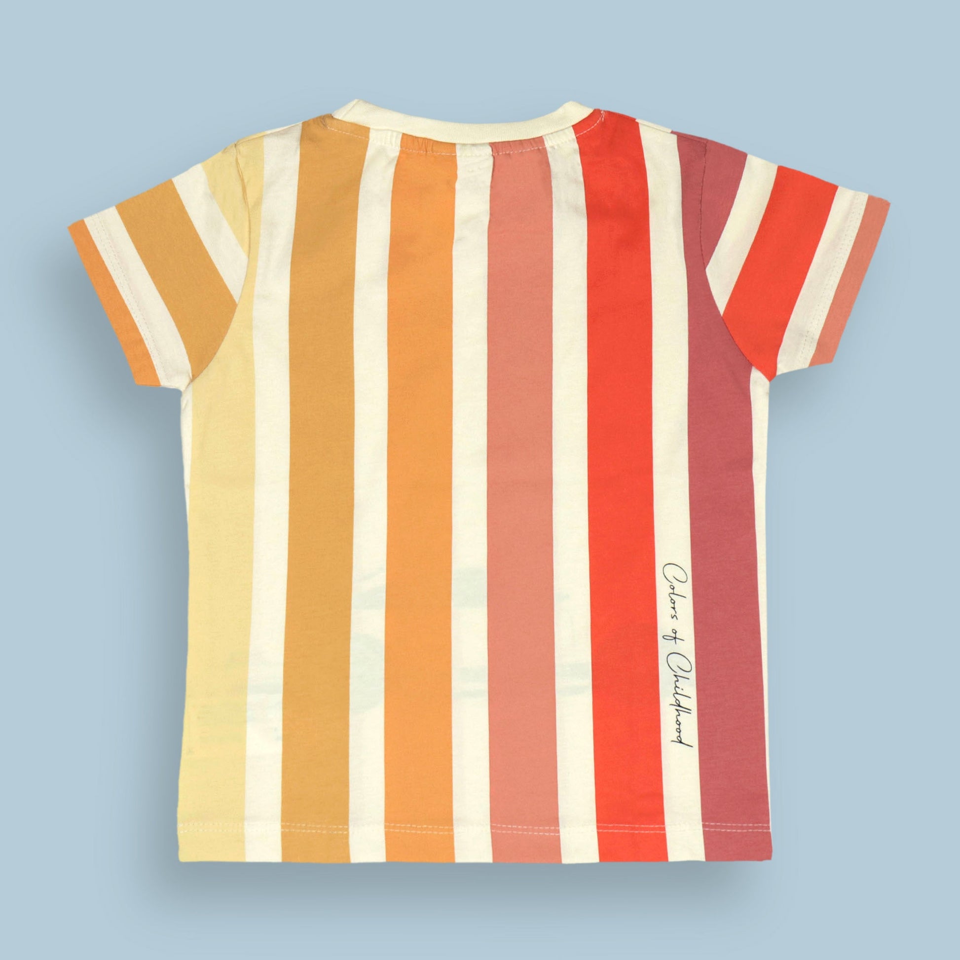 Ollypop Boys’ Striped Sinker Fabric T-Shirt – Dark Orange, Half Sleeves, Car Print, Smart Outdoor & Sports Wear