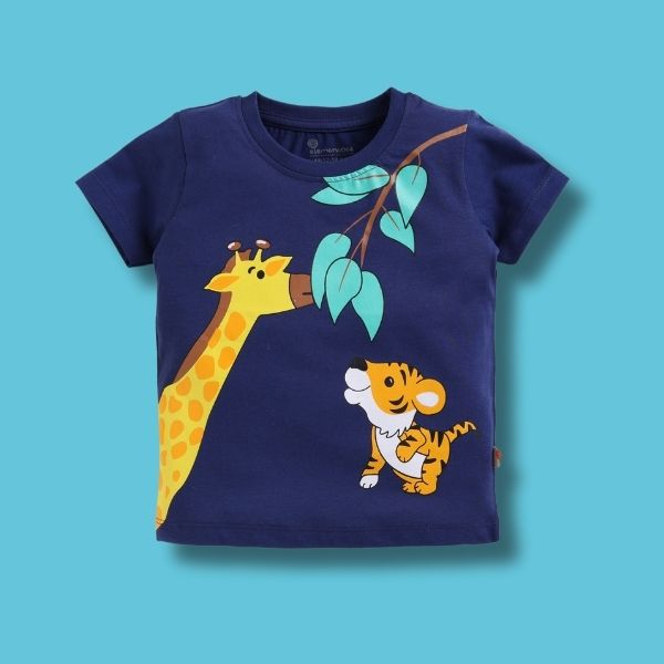 CUCUMBER Navy Blue Boy's Tee – Playful Giraffe & Lion Design